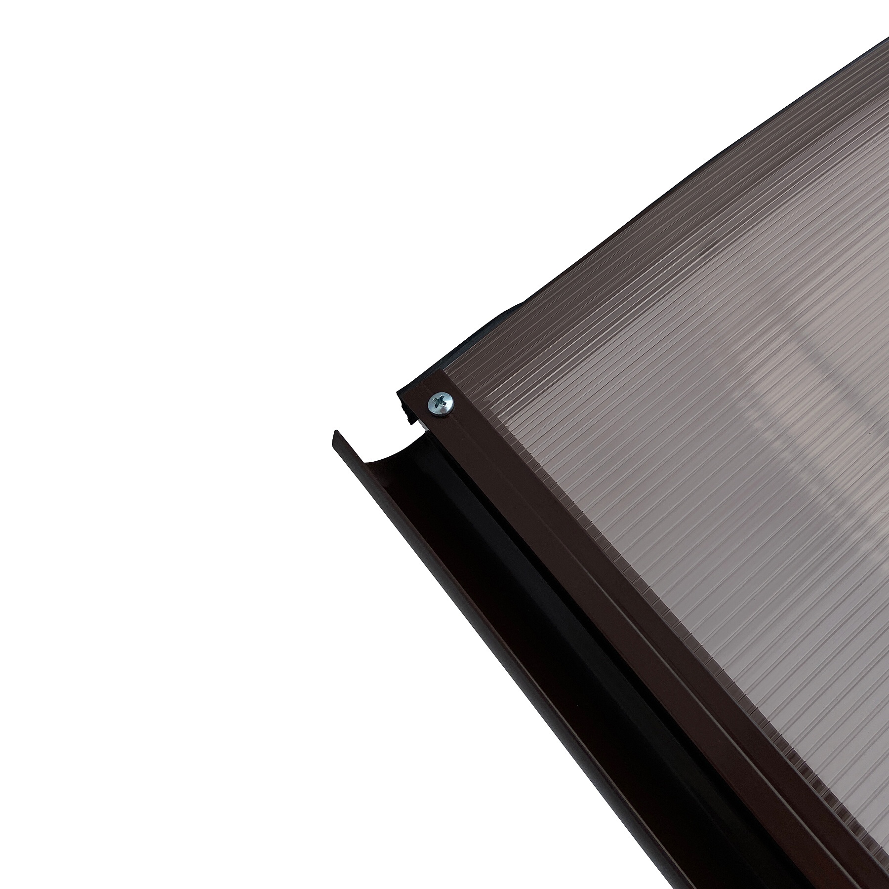 Ścianka boczna aluminiowa uniwersalna w kolorze brązowym do daszka nad drzwiami, 310 x 600 x 1850 mm, poliwęglan komorowy dymiony 4,5 mm.