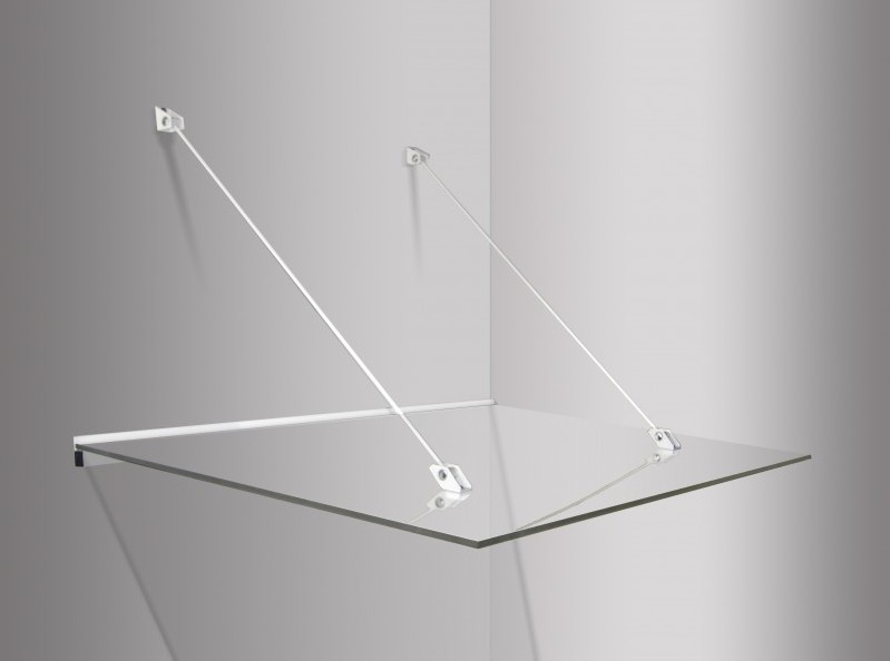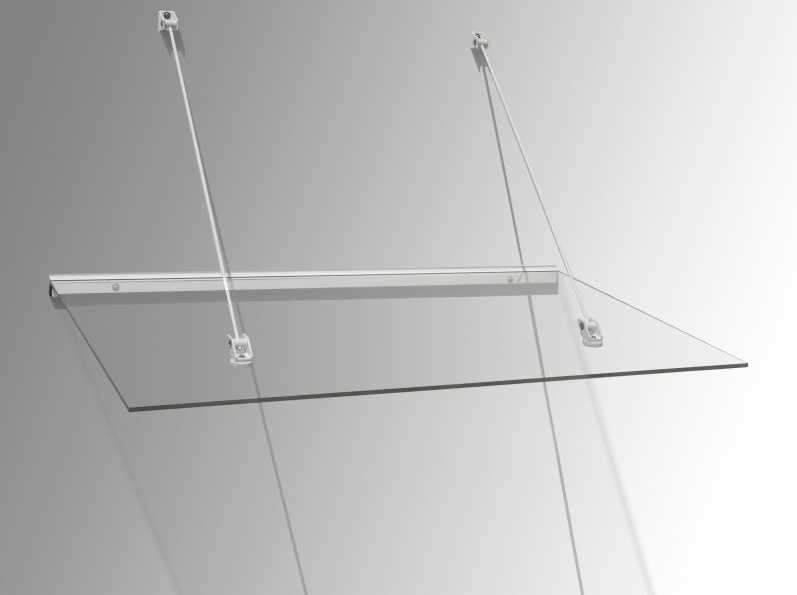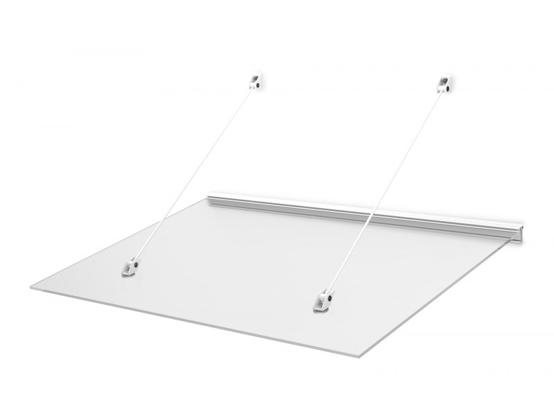 Aluminiowy daszek nad drzwiami, biały, szer 1500 x gł 970 x wys 200 mm, przezroczysta pleksi 10 mm.