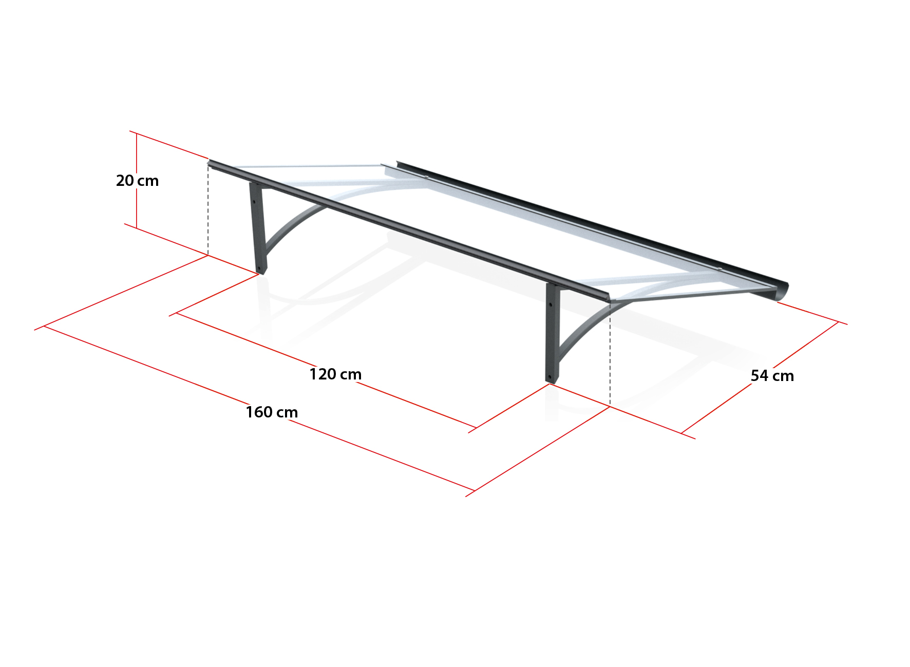 Aluminiowy baldachim wejściowy, antracyt, szer 1600 x gł 540 x wys 200 mm, przezroczysty poliwęglan komórkowy 4,5 mm.