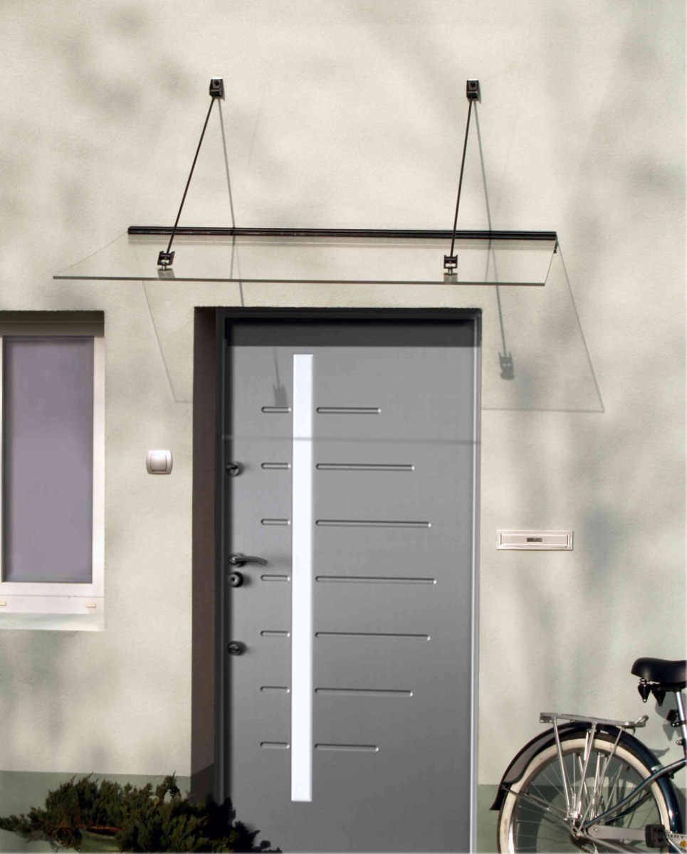 Daszek nad drzwiami wykonany z aluminium malowanego proszkowo. W przeciwieństwie do zadaszeń o konstrukcji z tworzywa sztucznego, konstrukcja aluminiowa doskonale opiera się działaniu czynników atmosferycznych, a także jest mocna i stabilna nawet po latach. Nie kruszy się zimą pod wpływem mrozu i nie zmienia koloru nawet pod wpływem silnego letniego słońca. Daszek przeszklony jest całkowicie przezroczystą, przezroczystą plexi o grubości 10 mm.