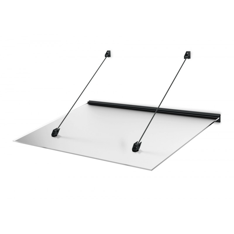 Aluminiowy baldachim wejściowy, czarny, szer 1500 x gł 970 x wys 200 mm, przezroczysta pleksi 10 mm.