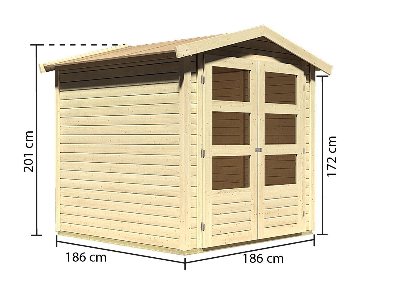 Podstawowy model drewnianego domu do Twojego ogrodu. Model ten posiada dwuspadowy dach oraz dwuskrzydłowe drzwi uchylne z oknem w każdym skrzydle. Materiałem konstrukcyjnym domu są profile drewniane o grubości 19 mm, doskonale wyfrezowane ze świerku nordyckiego. Dostarczamy go w zestawie w stanie rozłożonym, gdzie ściany składają się z pojedynczych profili drewnianych, które wystarczy złożyć i skręcić. Gwarantuje to niezwykle prosty montaż, który może wykonać każdy domowy majsterkowicz.