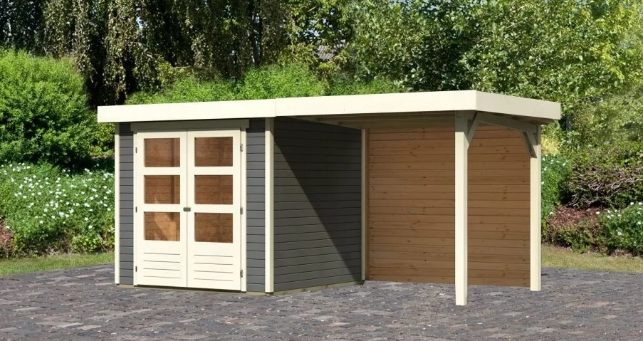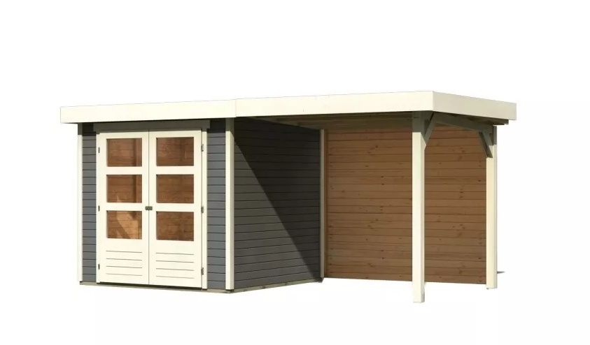 dom drewniany KARIBU ASKOLA 2 + nadstawka 240 cm łącznie ze ścianą tylną (9165) terragrau