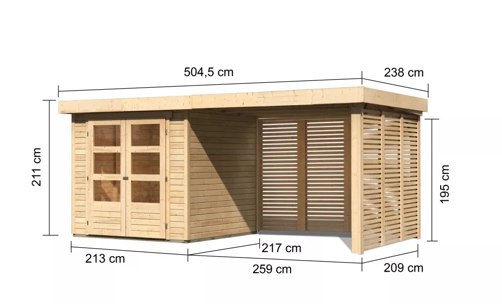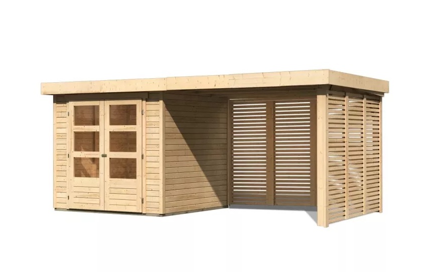 dom drewniany KARIBU ASKOLA 2 + nadstawka 280 cm łącznie ze ścianami tylnymi i bocznymi (9169) natur