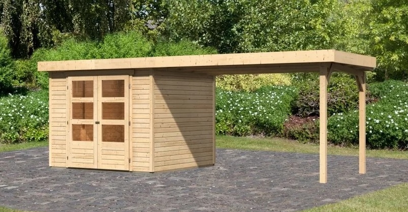 dom drewniany KARIBU ASKOLA 3,5 + nadstawka 280 cm (77720) natur