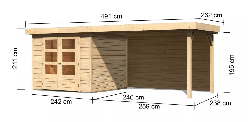 dom drewniany KARIBU ASKOLA 3,5 + nadstawka 280 cm łącznie ze ścianą tylną (9149) natur