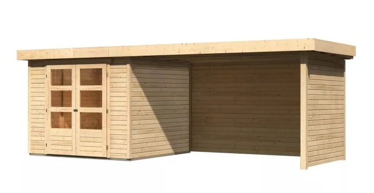 dom drewniany KARIBU ASKOLA 3,5 + nadstawka 280 cm łącznie ze ścianami tylnymi i bocznymi (77721) natur