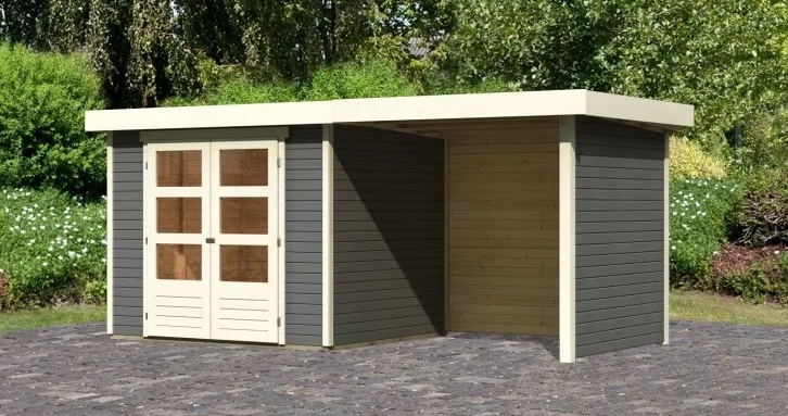 dom drewniany KARIBU ASKOLA 3 + nadstawka 240 cm łącznie ze ścianami tylnymi i bocznymi (82923) terragrau