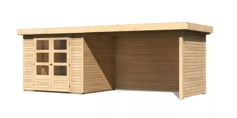 dom drewniany KARIBU ASKOLA 3 + nadstawka 280 cm łącznie ze ścianami tylnymi i bocznymi (77727) natur