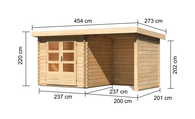 dom drewniany KARIBU BASTRUP 2 + nadstawka 200 cm łącznie ze ścianami tylnymi i bocznymi (73314) natur