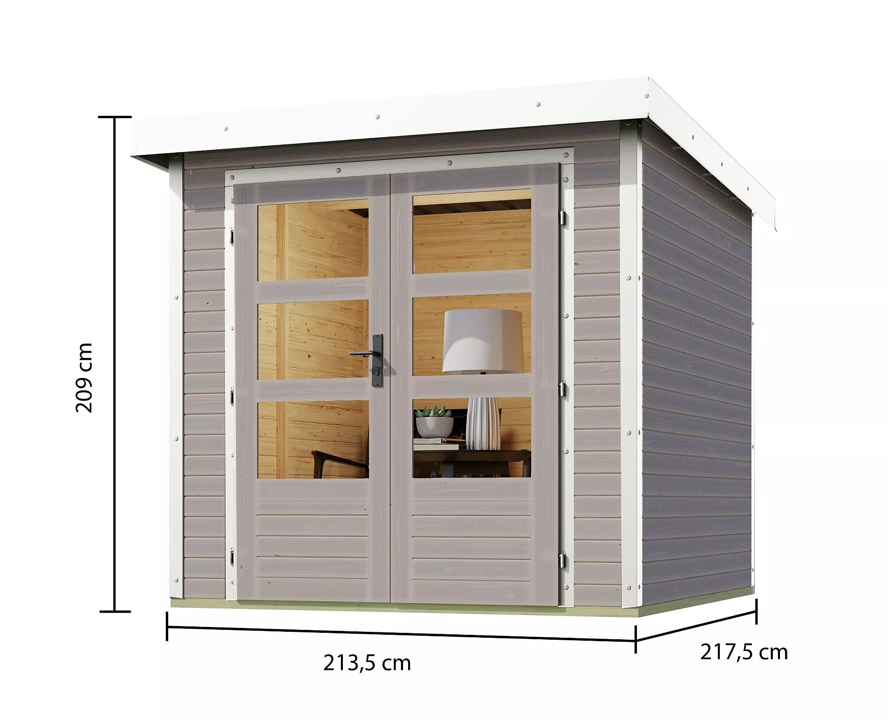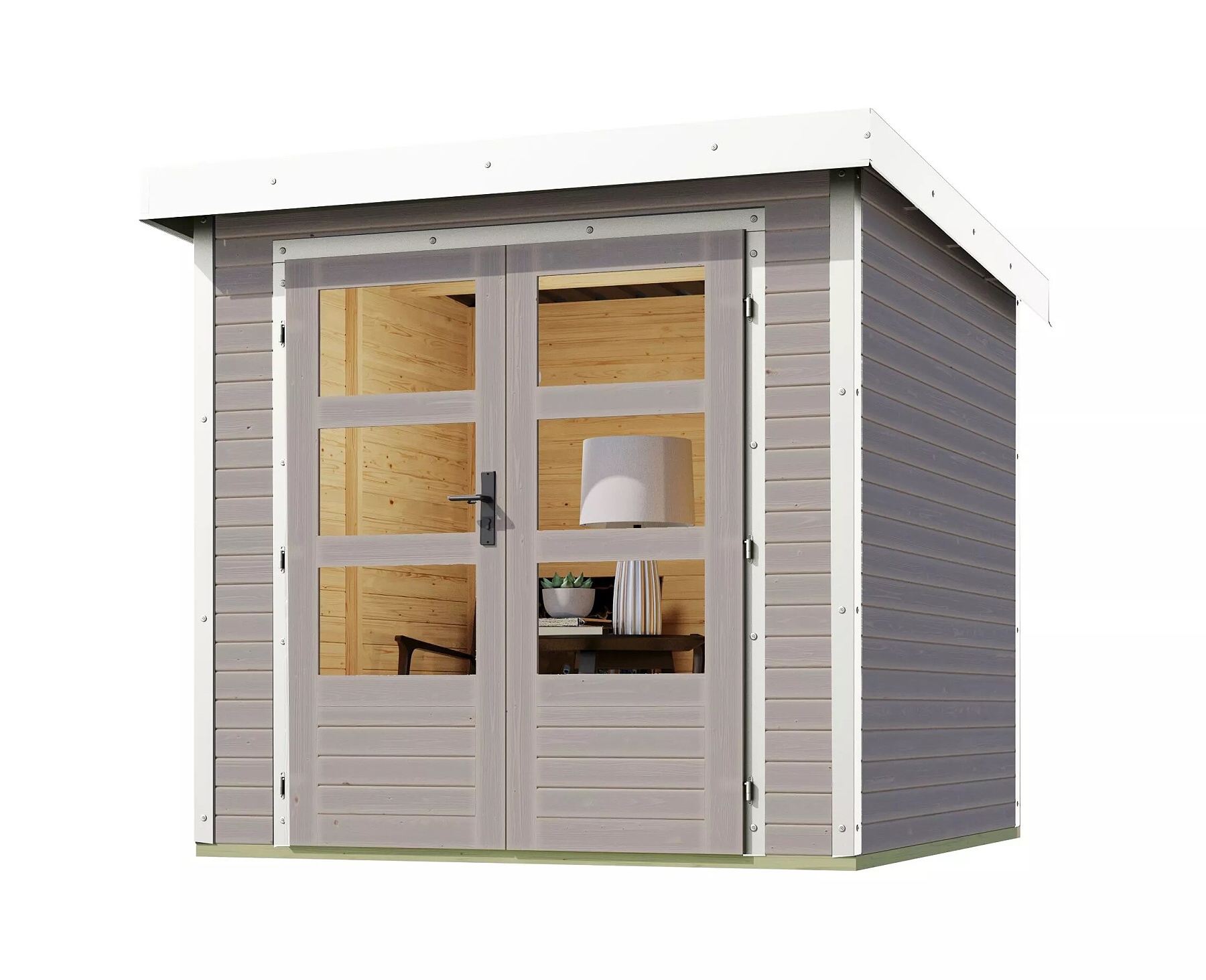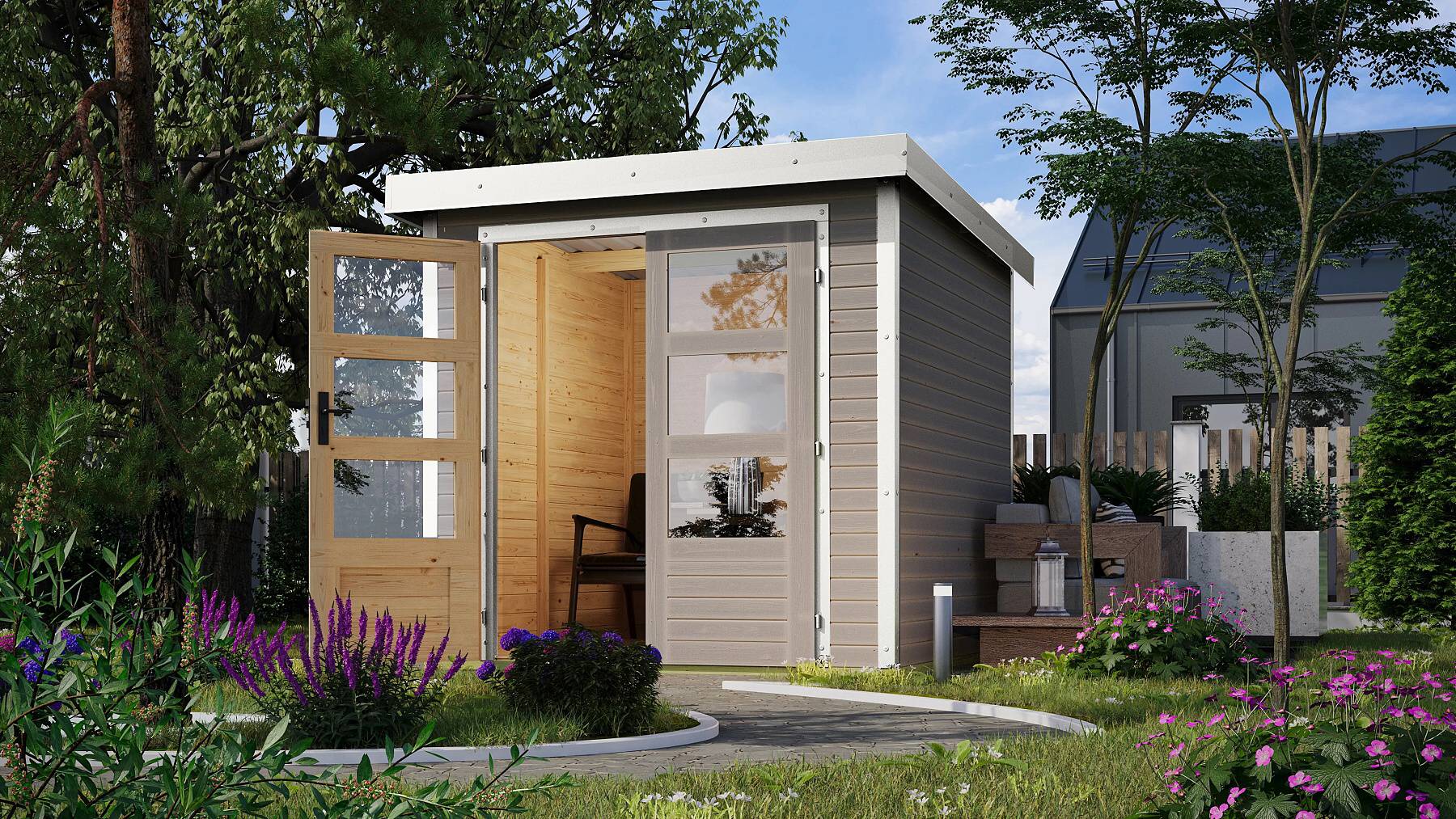 Wszystko dla ogrodu > Domki ogrodowe > Domki drewniane > dom hybrydowy KARIBU JUPITER D (93417) jasnoszary / biały
