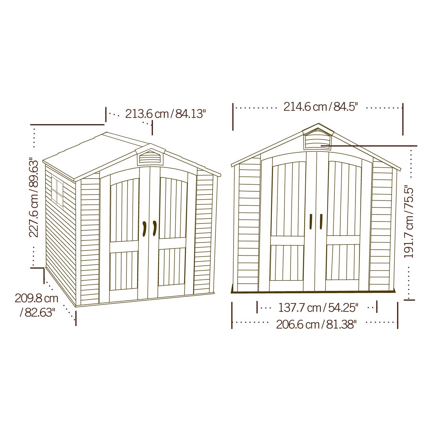 Solidny domek z tworzywa sztucznego „nowej generacji” do przechowywania artykułów ogrodniczych, sportowych, basenowych, grillowych, kempingowych, motoryzacyjnych i innych artykułów ogrodniczych. Nowoczesny design, łatwy montaż, zastosowanie całoroczne. Domek ogrodowy ma metalową konstrukcję nośną, a podwójne ściany, dach, podwójne drzwi i podłoga wykonane są z masywnego, bardzo wytrzymałego i praktycznie nietłukącego się tworzywa sztucznego. Plastikowa podłoga antypoślizgowa jest częścią domu (wliczona w cenę). Dom wyposażony jest w podwójne drzwi na zawiasach. Grubość podwójnej ścianki z tworzywa sztucznego wynosi 26 mm. Nachylenie dachu wynosi 30o, co znacznie zmniejsza ilość i nacisk śniegu na dach. Materiał, z którego wykonany jest dom (wyjątkowo wytrzymały polietylen z filtrem UV) nie żółknie i nie kruszy się, dzięki czemu nie ma konieczności częstego malowania domu, jak to jest konieczne w przypadku np. domów drewnianych – w praktyce sprawdza się domek ogrodowy z tworzywa sztucznego bezobsługowy. Dom został zaprojektowany i wykonany w taki sposób, aby montaż był możliwie prosty i krótki. Po prostu zatrzaskujesz poszczególne części w sąsiednich częściach i zabezpieczasz połączenie śrubą.