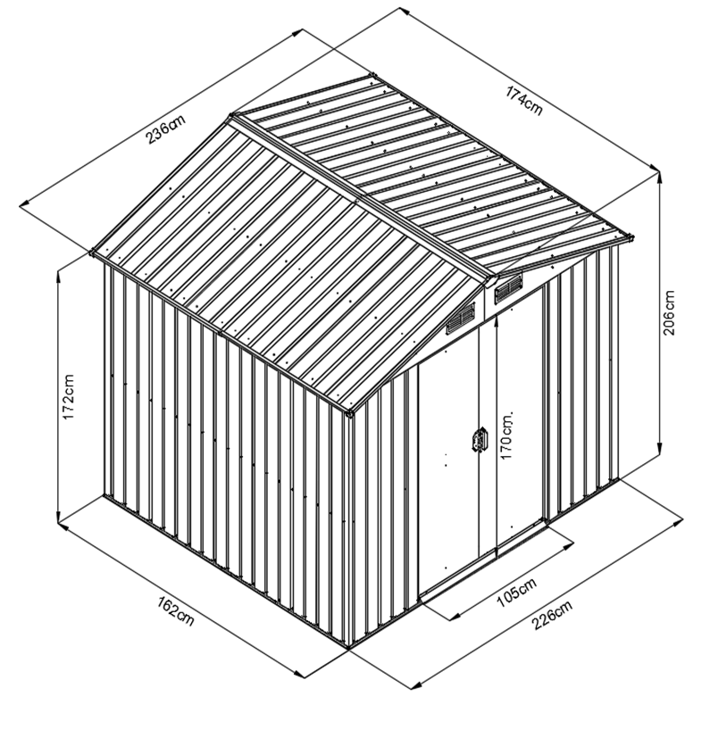 Dom może służyć do przechowywania artykułów ogrodniczych, sportowych, basenowych, grillowych, kempingowych, motoryzacyjnych i innych. Jest to jeden z najlepszych jakościowo domów na rynku czeskim o grubości ścianki 0,25 mm. Nowoczesny design, kolor, łatwy montaż, użytkowanie przez cały rok. Wysokiej jakości materiał z obróbką powierzchniową - blacha cynkowana elektrolitycznie i malowana na gorąco. Dach dwuspadowy, drzwi przednie przesuwne. Możliwość zamknięcia (zamek nie jest częścią dostawy).