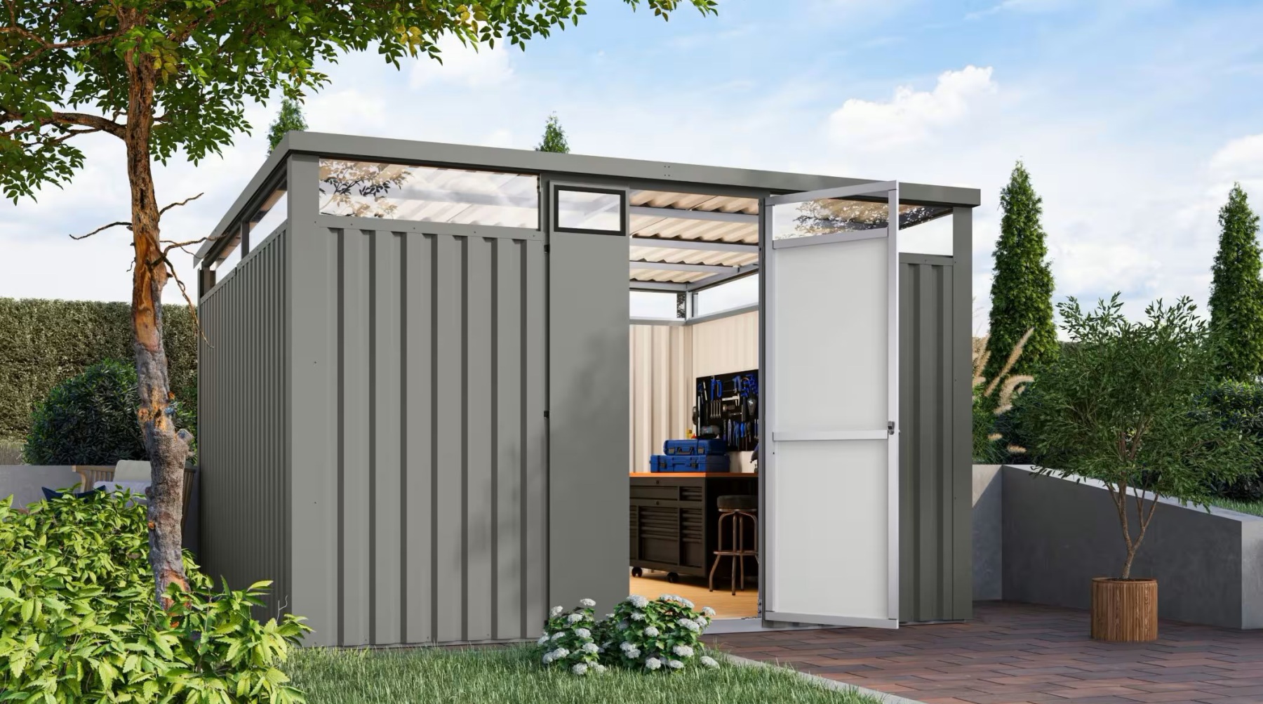 Odkryj doskonałość w swoim ogrodzie dzięki naszym metalowym domkom ogrodowym OSTEN, które są wykonane z blachy malowanej proszkowo i wyposażone w solidną ramę z ocynkowanych kwadratowych rur stalowych. Te najwyższej jakości domy łączą w sobie doskonałą funkcjonalność i ponadczasowy design, upiększając przestrzeń na świeżym powietrzu i zapewniając cenną przestrzeń do przechowywania.