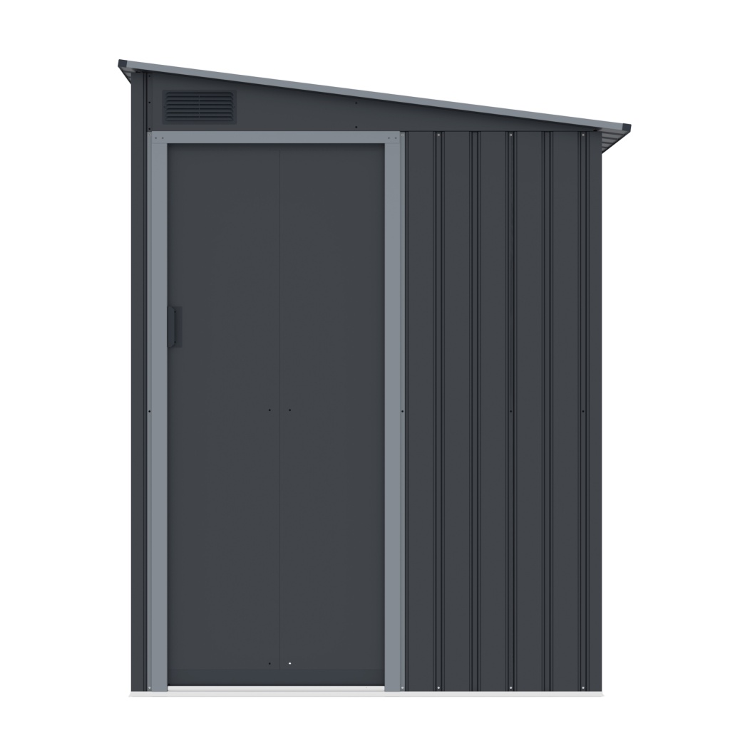 Klasyczny płaski dach zapewnia wystarczająco dużo miejsca i umożliwia sprawne odprowadzanie wody deszczowej. Przednie wewnętrzne drzwi przesuwne jednoskrzydłowe o wymiarach 64 x 162 cm umożliwiają łatwy dostęp do domu, zwiększając jego praktyczność i komfort użytkowania. WANDHAUS 56 stanowi kompletne rozwiązanie umożliwiające efektywne i bezpieczne przechowywanie Twoich rzeczy w ogrodzie lub na zewnątrz.