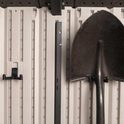 Solidny domek z tworzywa sztucznego „nowej generacji” do przechowywania artykułów ogrodniczych, sportowych, basenowych, grillowych, kempingowych, motoryzacyjnych i innych artykułów ogrodniczych. Nowoczesny design, łatwy montaż, zastosowanie całoroczne. Domek ogrodowy ma metalową konstrukcję nośną, a podwójne ściany, dach, podwójne drzwi i podłoga wykonane są z masywnego, bardzo wytrzymałego i praktycznie nietłukącego się tworzywa sztucznego. Plastikowa podłoga antypoślizgowa jest częścią domu (wliczona w cenę). Dom wyposażony jest w podwójne drzwi na zawiasach. Grubość podwójnej ścianki z tworzywa sztucznego wynosi 25 mm. Nachylenie dachu wynosi 30o, co znacznie zmniejsza ilość i nacisk śniegu na dach. Materiał, z którego wykonany jest dom (wyjątkowo wytrzymały polietylen z filtrem UV) nie żółknie i nie kruszy się, dzięki czemu nie ma konieczności częstego malowania domu, jak to jest konieczne w przypadku np. domów drewnianych – w praktyce sprawdza się domek ogrodowy z tworzywa sztucznego bezobsługowy. Dom został zaprojektowany i wykonany w taki sposób, aby montaż był możliwie prosty i krótki. Po prostu zatrzaskujesz poszczególne części w sąsiednich częściach i zabezpieczasz połączenie śrubą.