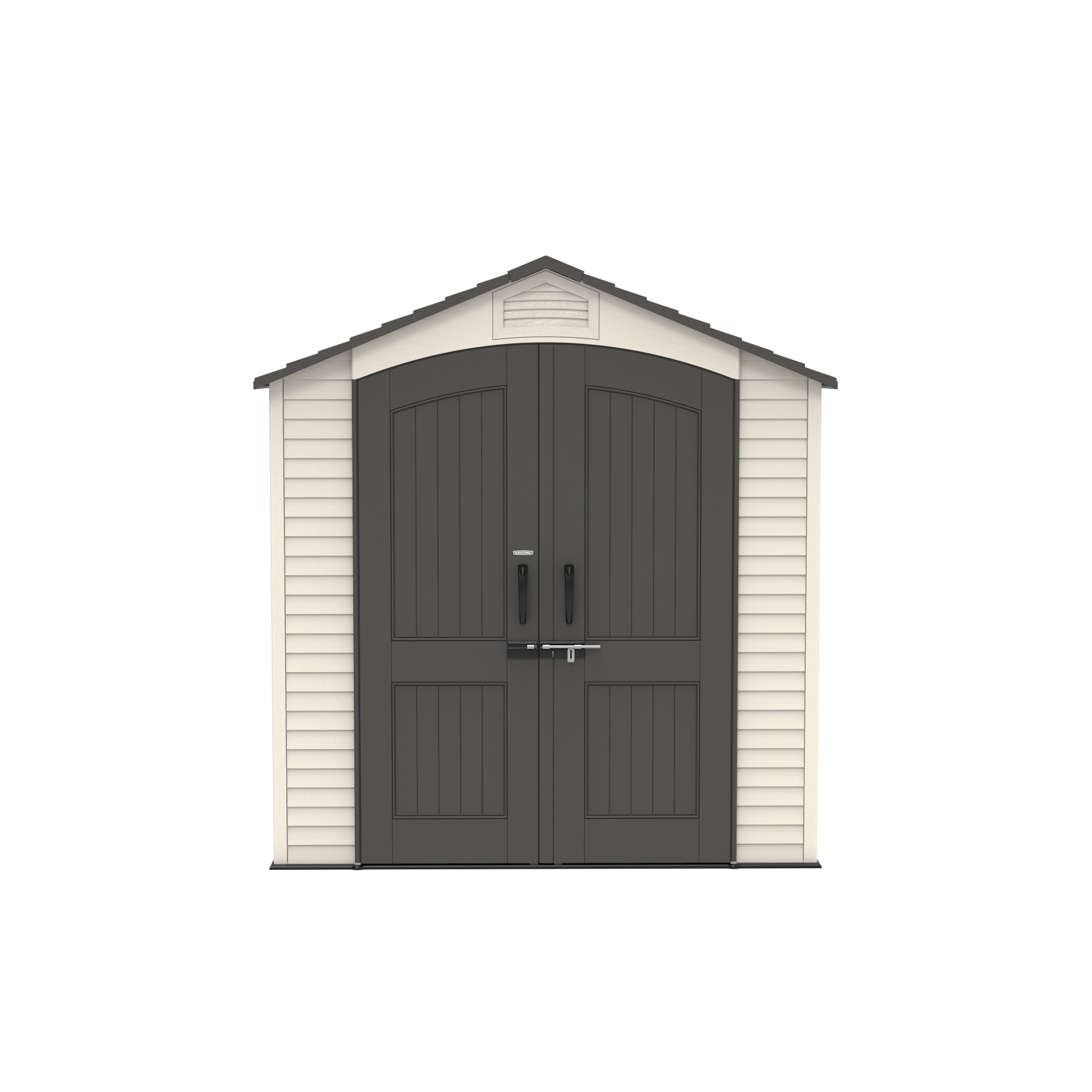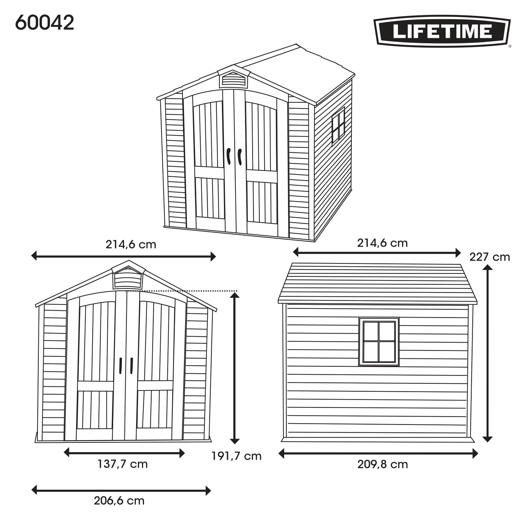 Solidny domek z tworzywa sztucznego „nowej generacji” do przechowywania artykułów ogrodniczych, sportowych, basenowych, grillowych, kempingowych, motoryzacyjnych i innych artykułów ogrodniczych. Nowoczesny design, łatwy montaż, zastosowanie całoroczne. Domek ogrodowy ma metalową konstrukcję nośną, a podwójne ściany, dach, podwójne drzwi i podłoga wykonane są z masywnego, bardzo wytrzymałego i praktycznie nietłukącego się tworzywa sztucznego. Plastikowa podłoga antypoślizgowa jest częścią domu (wliczona w cenę). Dom wyposażony jest w podwójne drzwi na zawiasach. Grubość podwójnej ścianki z tworzywa sztucznego wynosi 26 mm. Nachylenie dachu wynosi 30o, co znacznie zmniejsza ilość i nacisk śniegu na dach. Materiał, z którego wykonany jest dom (wyjątkowo wytrzymały polietylen z filtrem UV) nie żółknie i nie kruszy się, dzięki czemu nie ma konieczności częstego malowania domu, jak to jest konieczne w przypadku np. domów drewnianych – w praktyce sprawdza się domek ogrodowy z tworzywa sztucznego bezobsługowy. Dom został zaprojektowany i wykonany w taki sposób, aby montaż był możliwie prosty i krótki. Po prostu zatrzaskujesz poszczególne części w sąsiednich częściach i zabezpieczasz połączenie śrubą.