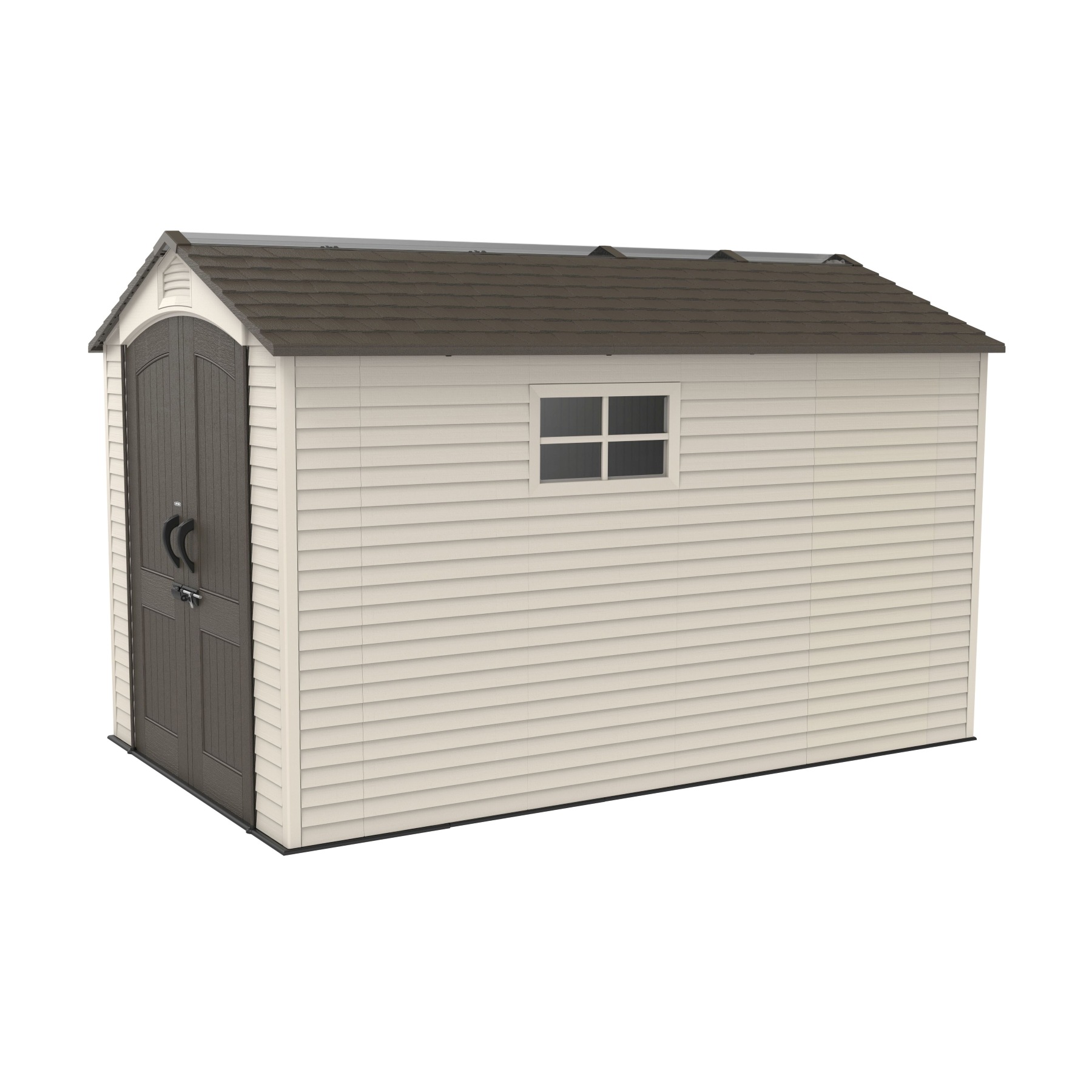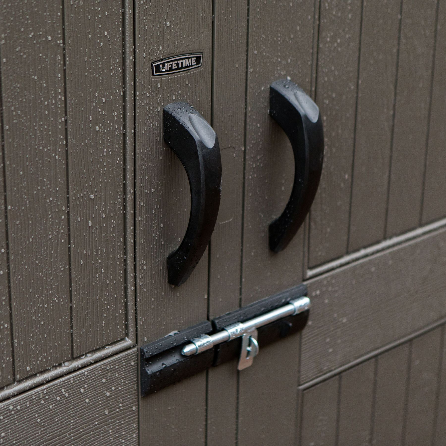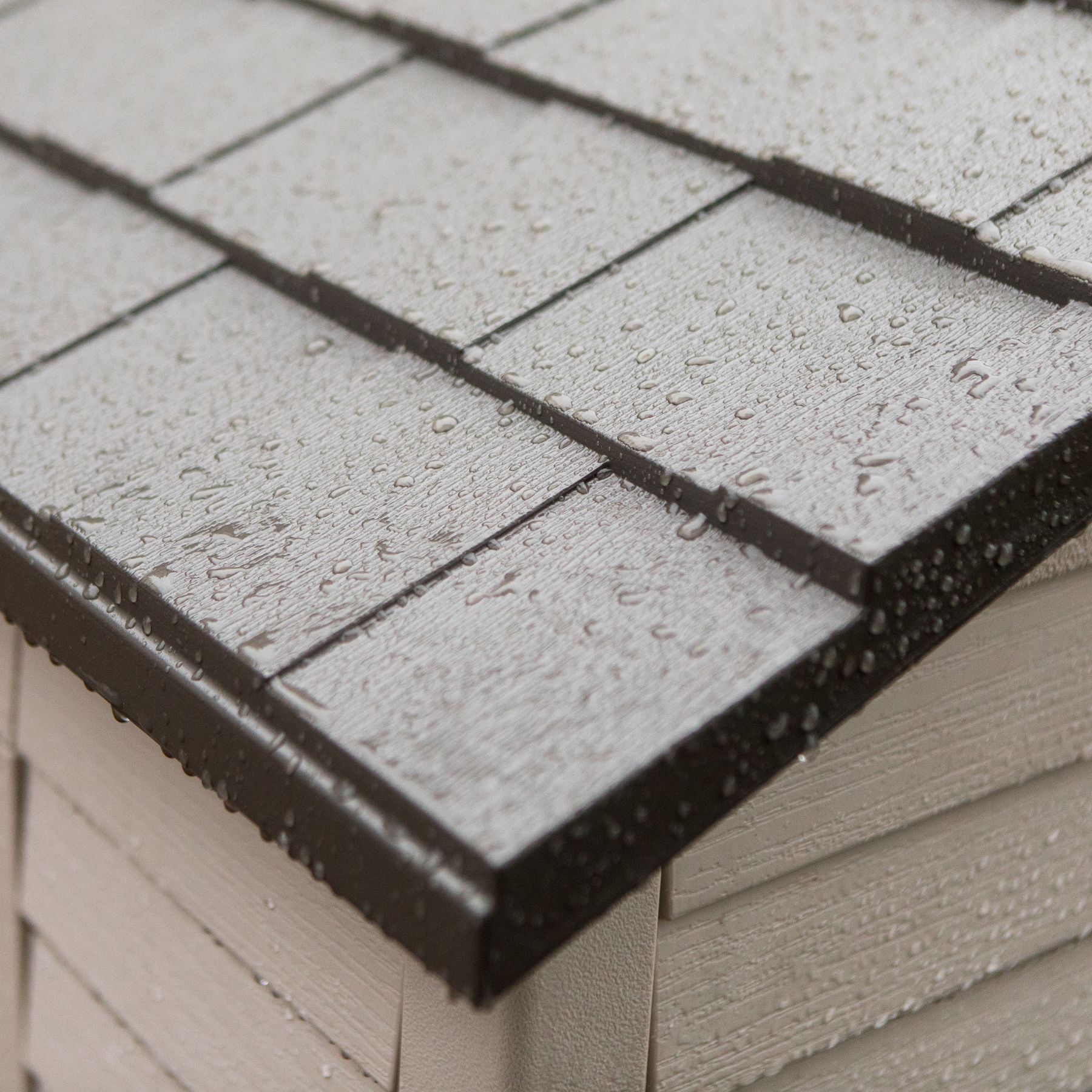 Solidny domek z tworzywa sztucznego „nowej generacji” do przechowywania artykułów ogrodniczych, sportowych, basenowych, grillowych, kempingowych, motoryzacyjnych i innych artykułów ogrodniczych. Nowoczesny design, łatwy montaż, zastosowanie całoroczne. Domek ogrodowy ma metalową konstrukcję nośną, a podwójne ściany, dach, podwójne drzwi i podłoga wykonane są z masywnego, bardzo wytrzymałego i praktycznie nietłukącego się tworzywa sztucznego. Plastikowa podłoga antypoślizgowa jest częścią domu (wliczona w cenę). Dom wyposażony jest w podwójne drzwi na zawiasach. Grubość podwójnej ścianki z tworzywa sztucznego wynosi 26 mm. Nachylenie dachu wynosi 30o, co znacznie zmniejsza ilość i nacisk śniegu na dach. Materiał, z którego wykonany jest dom (wyjątkowo wytrzymały polietylen z filtrem UV) nie żółknie i nie kruszy się, dzięki czemu nie ma konieczności częstego malowania domu, jak to jest konieczne w przypadku np. domów drewnianych – w praktyce sprawdza się domek ogrodowy z tworzywa sztucznego bezobsługowy. Dom został zaprojektowany i wykonany w taki sposób, aby montaż był możliwie prosty i krótki. Po prostu zatrzaskujesz poszczególne części w sąsiednich częściach i zabezpieczasz połączenie śrubą.
