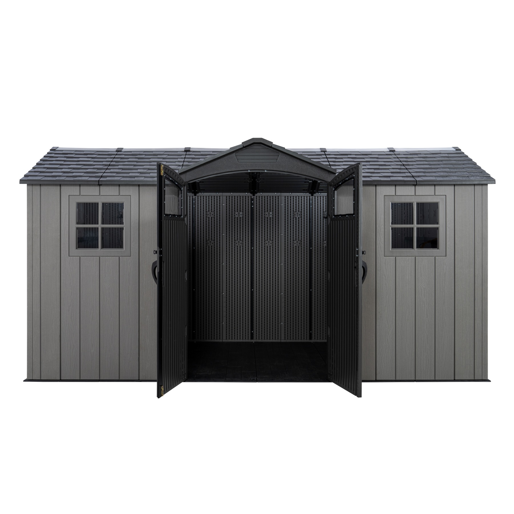 Solidny domek z tworzywa sztucznego „nowej generacji” do przechowywania artykułów ogrodniczych, sportowych, basenowych, grillowych, kempingowych, motoryzacyjnych i innych artykułów ogrodniczych. Nowoczesny design, łatwy montaż, zastosowanie całoroczne. Domek ogrodowy ma metalową konstrukcję nośną, a podwójne ściany, dach, podwójne drzwi i podłoga wykonane są z masywnego, bardzo wytrzymałego i praktycznie nietłukącego się tworzywa sztucznego. Plastikowa podłoga antypoślizgowa jest częścią domu (wliczona w cenę). Dom wyposażony jest w podwójne drzwi na zawiasach. Grubość podwójnej ścianki z tworzywa sztucznego wynosi 26 mm. Nachylenie dachu wynosi 30o, co znacznie zmniejsza ilość i nacisk śniegu na dach. Materiał, z którego wykonany jest dom (wyjątkowo wytrzymały polietylen z filtrem UV) nie żółknie i nie kruszy się, dzięki czemu nie ma konieczności częstego malowania domu, jak to jest konieczne w przypadku np. domów drewnianych – w praktyce sprawdza się domek ogrodowy z tworzywa sztucznego bezobsługowy. Dom został zaprojektowany i wykonany w taki sposób, aby montaż był możliwie prosty i krótki. Po prostu zatrzaskujesz poszczególne części w sąsiednich częściach i zabezpieczasz połączenie śrubą.