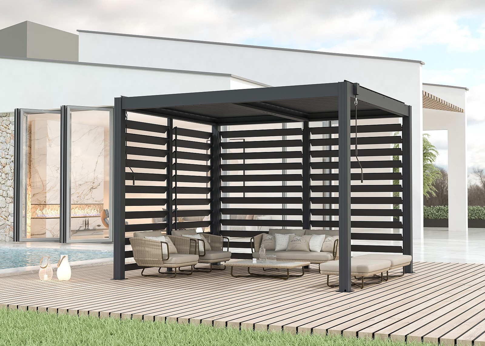 Ściana boczna z listew o szerokości 2,5 m do pergoli LANITPLAST BIOCLIMATIC BASIC 32.
