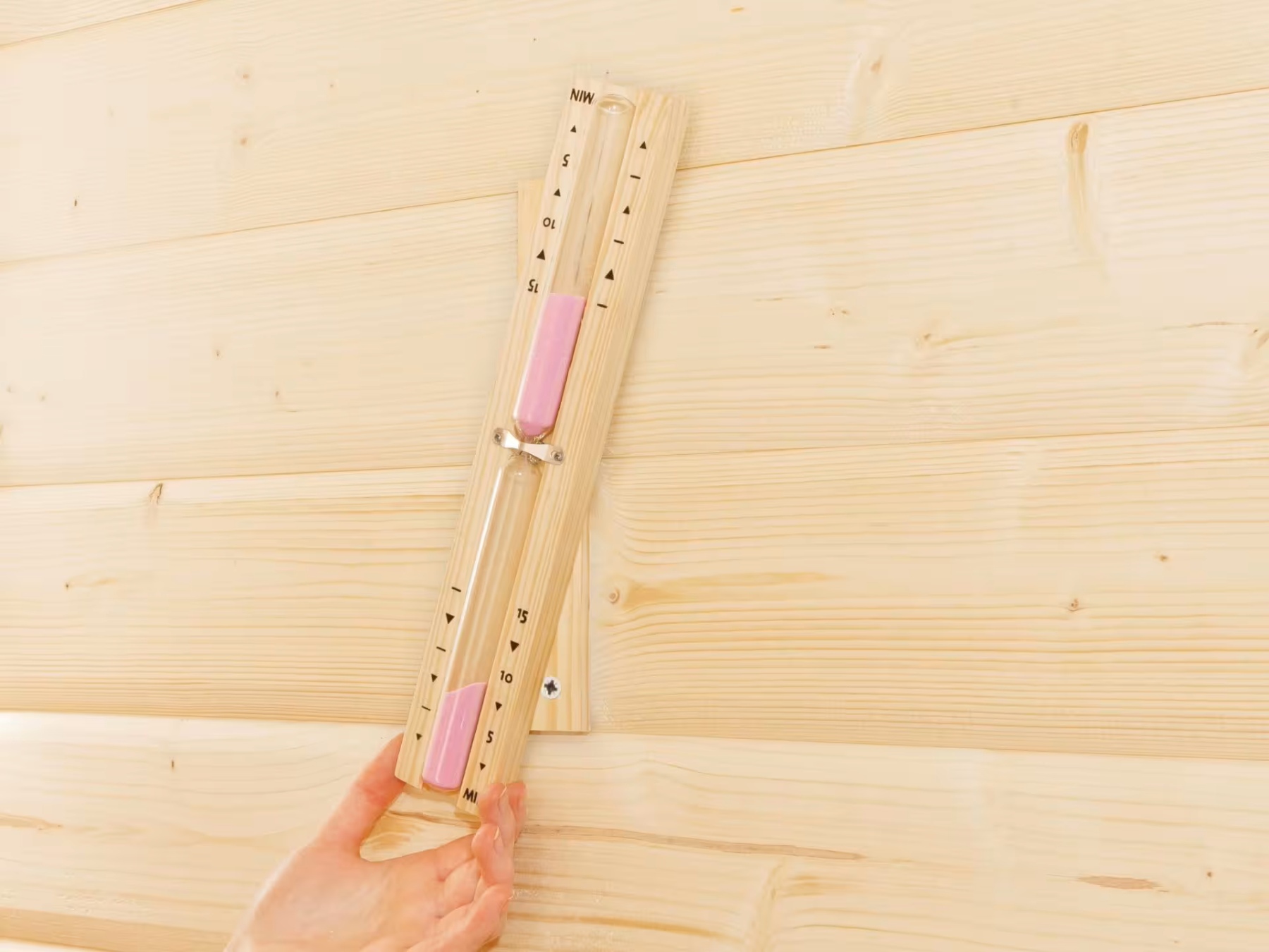Idealny czas sauny wynosi od 8 do 15 minut, dlatego klepsydra to niezbędny element wyposażenia każdej sauny. Szklany cylinder wypełniony piaskiem, przymocowany metalowym klipsem do litego kawałka naturalnego drewna, pozwala na precyzyjny pomiar do 15 minut. Zegar o wymiarach 29 x 5 x 2,9 cm pomoże Ci łatwo kontrolować czas i cieszyć się kąpielą w saunie w idealnych warunkach.