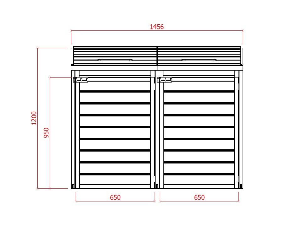 Drewniana skrzynia do przechowywania 2 koszy na śmieci. Drewno jest impregnowane ciśnieniowo przeciw pleśni, ale nadal zalecamy obróbkę powierzchniową odpowiednią do drewna zewnętrznego (według Twojego wyboru) - tj. powłoka przeciwgrzybicza plus np. bejca.