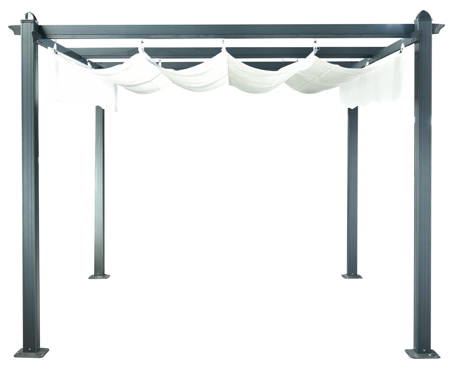 Aluminiowa pergola ogrodowa, w której znajdziesz przyjemne miejsce do odpoczynku w coraz upalne letnie dni. Rozsuwany dach ochroni Cię przed złą pogodą. Prosty mechanizm linkowy z łatwością przesuwa plandekę i umożliwia częściowe lub całkowite złożenie dachu. Konstrukcja pergoli wykonana jest z wytrzymałego stopu aluminium i jest natryskiwana farbą proszkową (komaxit), dzięki czemu jest odporna na naturalne wpływy klimatyczne.