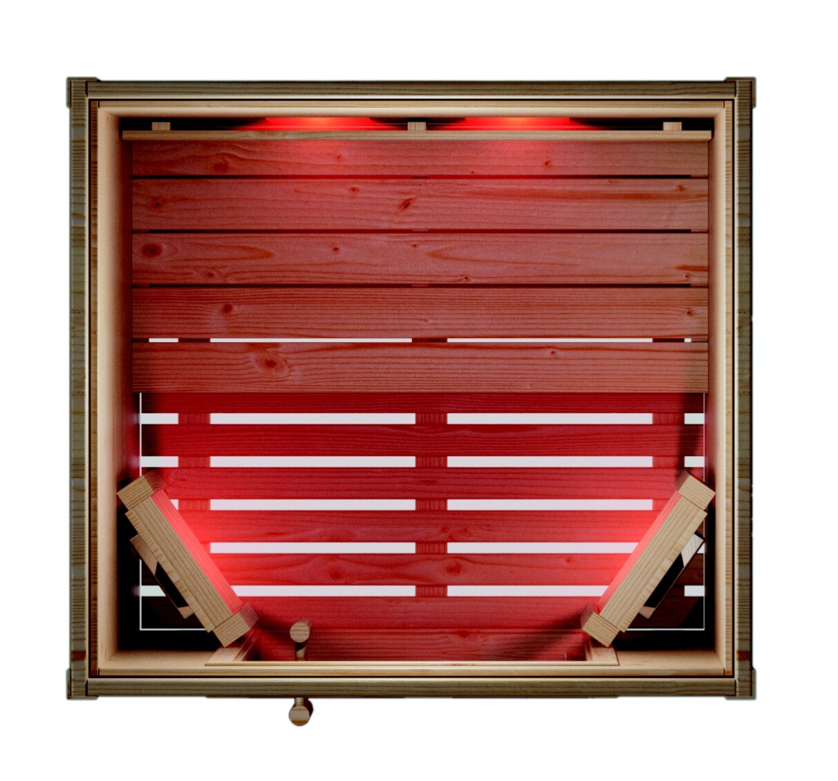 - 5x grzejnik magnezowy (2x z tyłu, 1x z przodu po lewej, 1x z przodu po prawej, 1x pod ławką) z bardzo dużymi lustrami parabolicznymi w celu maksymalizacji wydajności i idealnego ukierunkowania promieniowania podczerwonego typu IR-C