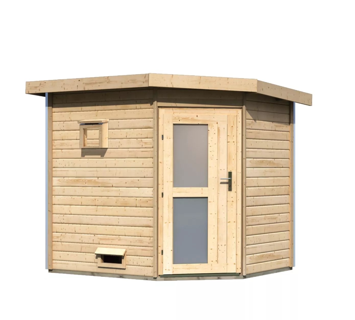 Zewnętrzny model sauny fińskiej do Twojego ogrodu. Sauna przeznaczona jest dla 3 osób leżących. Nowoczesny design z chromowanymi narożnikami. Jej producent, firma KARIBU HOLZTECHNIK z niemieckiego Bremy, z powodzeniem kontynuuje wielowiekową tradycję skandynawskiego saunowania, jednocześnie wprowadzając nowoczesne technologie. Dostarczamy ją jako zestaw do samodzielnego montażu, w którym ściany składają się z pojedynczych drewnianych profili, które wystarczy ze sobą połączyć i przykręcić, a dach stanowi jednolita płyta. Zapewnia to łatwy montaż, który każdy majsterkowicz wykona samodzielnie. Ściany sauny wykonane są z specjalnie wygładzonych desek z podwójnym piórem i wpustem, co gwarantuje niezwykłą wytrzymałość połączenia. Aby ciepło z wnętrza sauny nie uciekało, zainstalowano drugi sufit z konstrukcją ramową i wełną mineralną o grubości 42 mm.