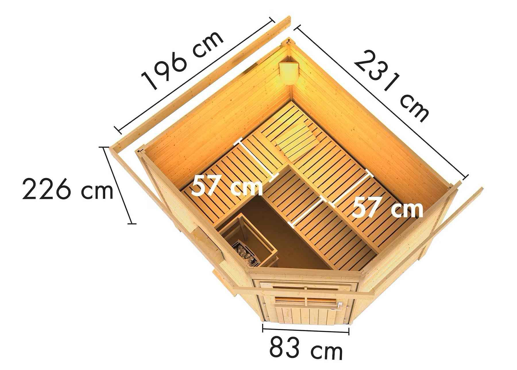 Zewnętrzny model sauny fińskiej do Twojego ogrodu. Sauna przeznaczona jest dla 3 osób leżących. Nowoczesny design z chromowanymi narożnikami. Jej producent, firma KARIBU HOLZTECHNIK z niemieckiego Bremy, z powodzeniem kontynuuje wielowiekową tradycję skandynawskiego saunowania, jednocześnie wprowadzając nowoczesne technologie. Dostarczamy ją jako zestaw do samodzielnego montażu, w którym ściany składają się z pojedynczych drewnianych profili, które wystarczy ze sobą połączyć i przykręcić, a dach stanowi jednolita płyta. Zapewnia to łatwy montaż, który każdy majsterkowicz wykona samodzielnie. Ściany sauny wykonane są z specjalnie wygładzonych desek z podwójnym piórem i wpustem, co gwarantuje niezwykłą wytrzymałość połączenia. Aby ciepło z wnętrza sauny nie uciekało, zainstalowano drugi sufit z konstrukcją ramową i wełną mineralną o grubości 42 mm.