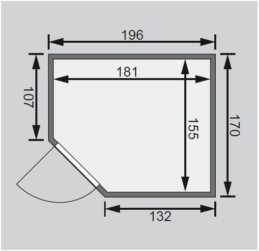 Fińska sauna przeznaczona dla dwóch leżących osób. Ma wymiary sz 196 x gł 170 x w 198 cm z narożnymi drzwiami. Ten model sauny fińskiej jest przeznaczony do ogrzewanych wnętrz domu lub mieszkania. Jej producent, firma KARIBU HOLZTECHNIK z niemieckich Brem, z powodzeniem nawiązał swoimi produktami do wielowiekowej tradycji skandynawskiego saunowania, jednocześnie wdrażając nowoczesne technologie. Sauna jest w całości wykonana z drewna świerku skandynawskiego w naturalnym wykończeniu. Drewno pochodzi z dalekiej północy Europy i jest całkowicie niepoddane obróbce chemicznej (nie jest ani bejcowane, ani lakierowane). Dzięki temu jest wolne od wszystkich znanych szkodliwych substancji, które mogłyby uwalniać się z drewna podczas saunowania.Ta sauna wewnętrzna charakteryzuje się wyjątkowymi właściwościami termoizolacyjnymi. Ściany sauny składają się z wewnętrznej i zewnętrznej warstwy specjalnie wygładzonych desek z piórem i wpustem, pomiędzy którymi znajduje się 42-milimetrowa izolacja termiczna z wełny mineralnej. Całkowita grubość ściany wynosi zatem 68 mm. Tylne lub boczne niewidoczne strony, skierowane ku ścianie pomieszczenia, mają zewnętrzną stronę wykonaną z płyty pilśniowej. Dlatego przy tej samej izolacji termicznej są o około 10 mm cieńsze niż widoczne strony pokryte boazerią.