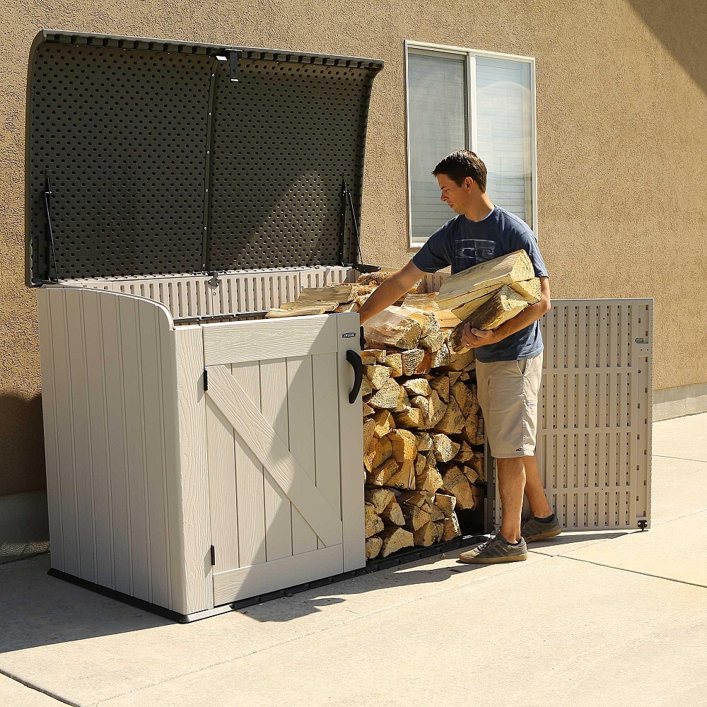 Plastikowe pudełko do przechowywania „nowej generacji” do przechowywania drewna, koszy na śmieci, obiektów sportowych, basenów, grilla, kempingów i artykułów motoryzacyjnych. Nowoczesny design, łatwy montaż, zastosowanie całoroczne. Skrzynia posiada metalową konstrukcję nośną, a ściany, dach, podwójne drzwi, podłoga wykonane są z masywnego, bardzo wytrzymałego i praktycznie nietłukącego się tworzywa sztucznego. Plastikowa podłoga antypoślizgowa jest częścią domu (wliczona w cenę). Skrzynia wyposażona jest w podwójne drzwi na zawiasach. Dach również składa się z dwóch części, które są zabezpieczone tłokiem gazowym, co ułatwia podnoszenie dachu. Jednocześnie rozwiązanie to zapewnia duże bezpieczeństwo użytkowania, gdy dach nie może „przycisnąć” palców. Grubość podwójnej ścianki z tworzywa sztucznego wynosi 26 mm. Materiał skrzynki (wyjątkowo wytrzymały polietylen z filtrem UV) nie żółknie i nie kruszy się, dzięki czemu nie jest konieczne jej regularne malowanie, które jest konieczne w przypadku np. skrzynek drewnianych czy żelaznych - skrzynka jest zatem praktycznie bezobsługowa . Pudełko zostało zaprojektowane i wyprodukowane tak, aby montaż był jak najprostszy i najkrótszy. Po prostu zatrzaskujesz poszczególne części w sąsiednich częściach i zabezpieczasz połączenie śrubą.