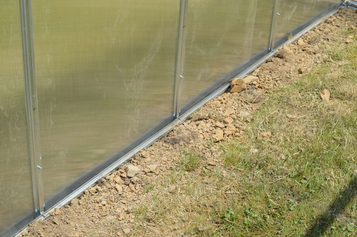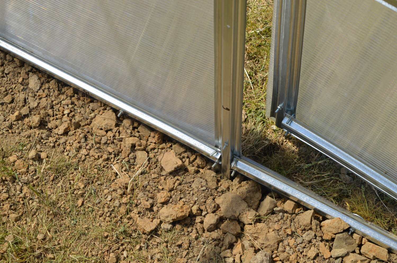 Szklarnia nie wymaga fundamentu, ponieważ jej konstrukcja jest przystosowana do zagłębienia w ziemi na głębokość około 20-25 cm. W otwory w ziemi wsuwa się kotwiące profile w kształcie odwróconej litery T, które następnie zalewa się betonem. Szklarnię można również zamocować na drewnianym, murowanym lub betonowym fundamencie, jednak wymaga to drobnych prac majsterkowych, a przede wszystkim wykonania niestandardowych metalowych uchwytów w kształcie litery L do przykręcenia profili do fundamentu (producent nie przewiduje montażu szklarni na fundamencie).