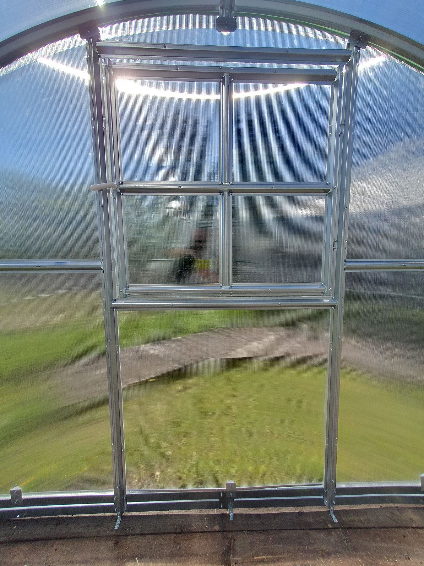 Dodatkowe tylne drzwi do szklarni LANITPLAST LUCIUS, po montażu szklarnia jest przejezdna.