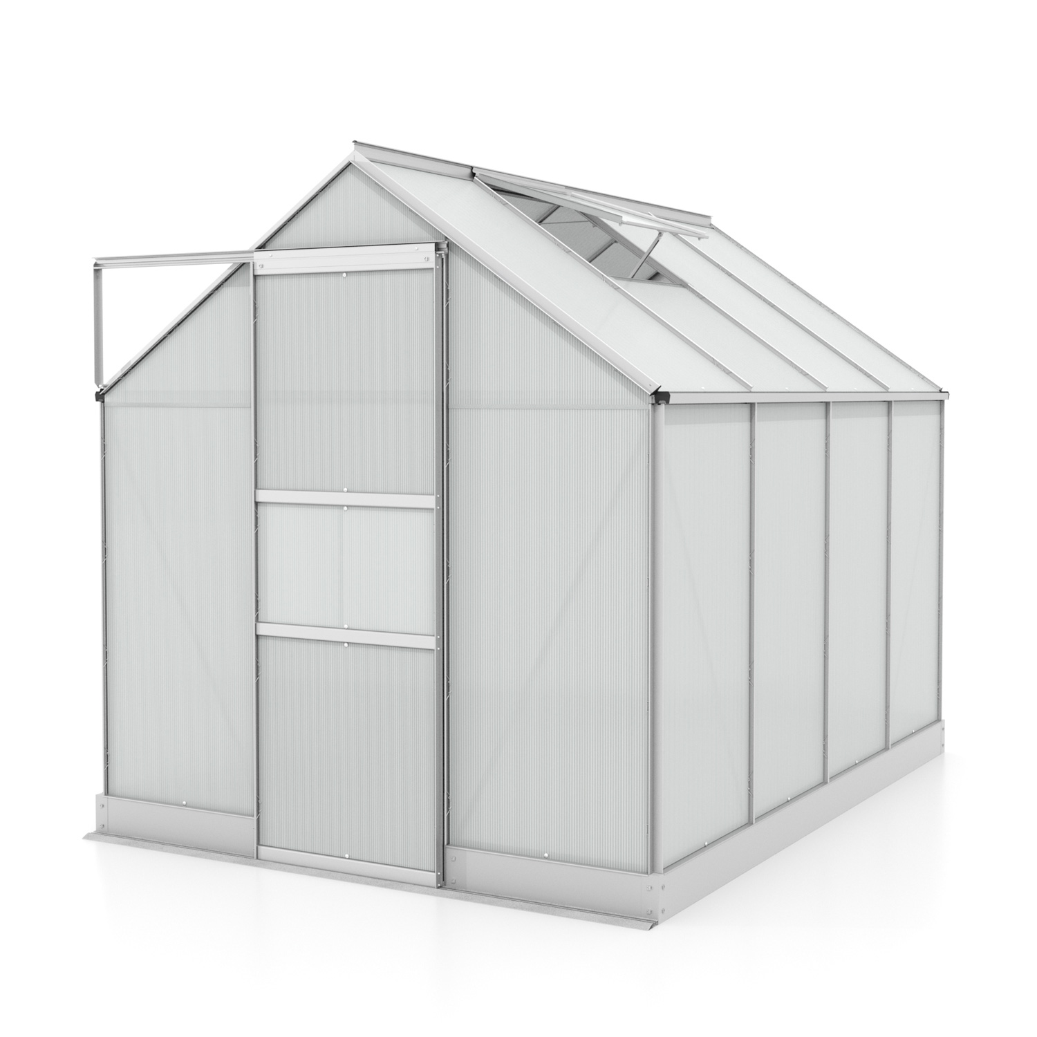 Szklarnia aluminiowa, sz 1,95 x gł 2,61 m, kolor srebrny, 1x okno dachowe, poliwęglan 4 mm, podstawa w cenie, pow. 5,09 m2.