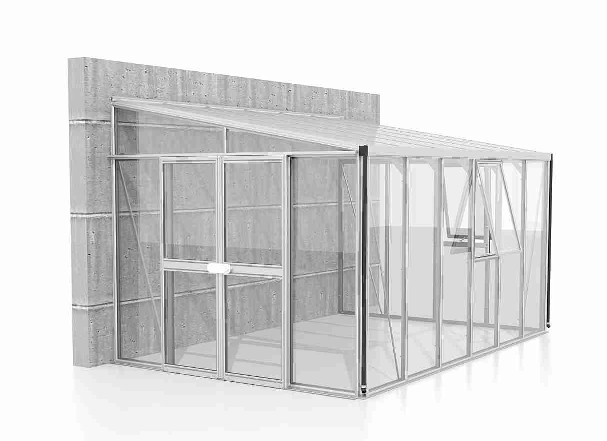 Szklarnie do ściany z serii ATHENA są zaliczane do kategorii PREMIUM - szklarnia jest produkowana przez renomowanego producenta z Wielkiej Brytanii. Szklarnia wykonana jest z anodowanych profili aluminiowych, a przeszklenie wykonane jest ze szkła hartowanego o grubości 3 mm. Szkło znacznie zmniejsza nagrzewanie się wnętrza w okresie letnim, jednocześnie zapewniając wystarczającą przepuszczalność światła. Przeszklenie dachu wykonane jest z termoizolacyjnych płyt komorowych z poliwęglanu o grubości 10 mm. Przeszklenie jest wsunięte w aluminiowe profile H.