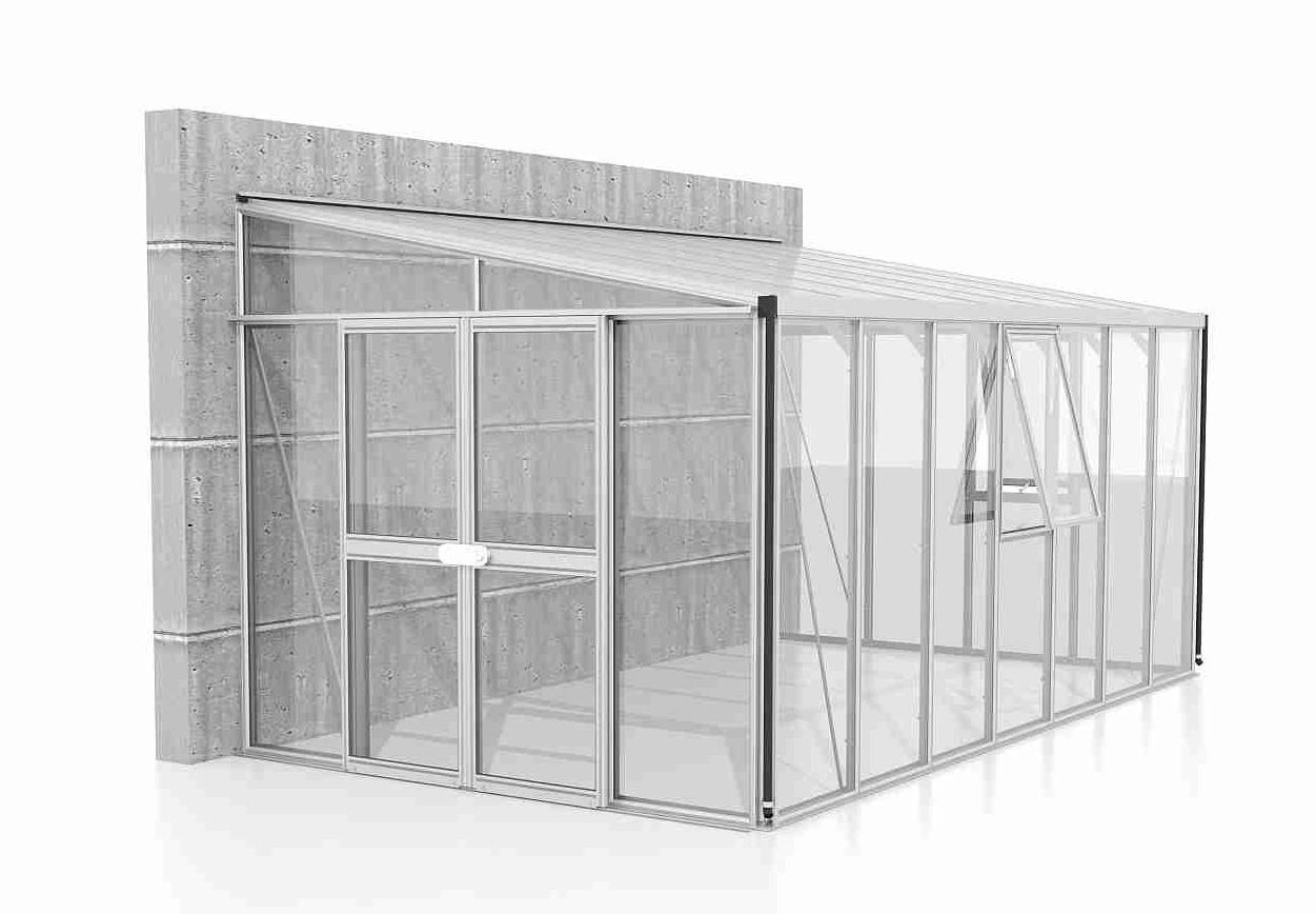 Szklarnie do ściany z serii ATHENA są zaliczane do kategorii PREMIUM - szklarnia jest produkowana przez renomowanego producenta z Wielkiej Brytanii. Szklarnia wykonana jest z anodowanych profili aluminiowych, a przeszklenie wykonane jest ze szkła hartowanego o grubości 3 mm. Szkło znacznie zmniejsza nagrzewanie się wnętrza w okresie letnim, jednocześnie zapewniając wystarczającą przepuszczalność światła. Przeszklenie dachu wykonane jest z termoizolacyjnych płyt komorowych z poliwęglanu o grubości 10 mm. Przeszklenie jest wsunięte w aluminiowe profile H.
