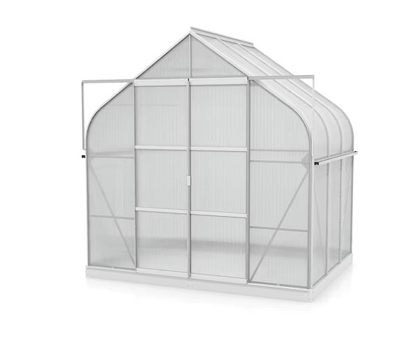 Szklarnia aluminiowa, sz 2,64 x gł 1,95 m, kolor srebrny, 1x okno dachowe, poliwęglan o grubości 4 mm z Wielkiej Brytanii, pow 5,14 m2.