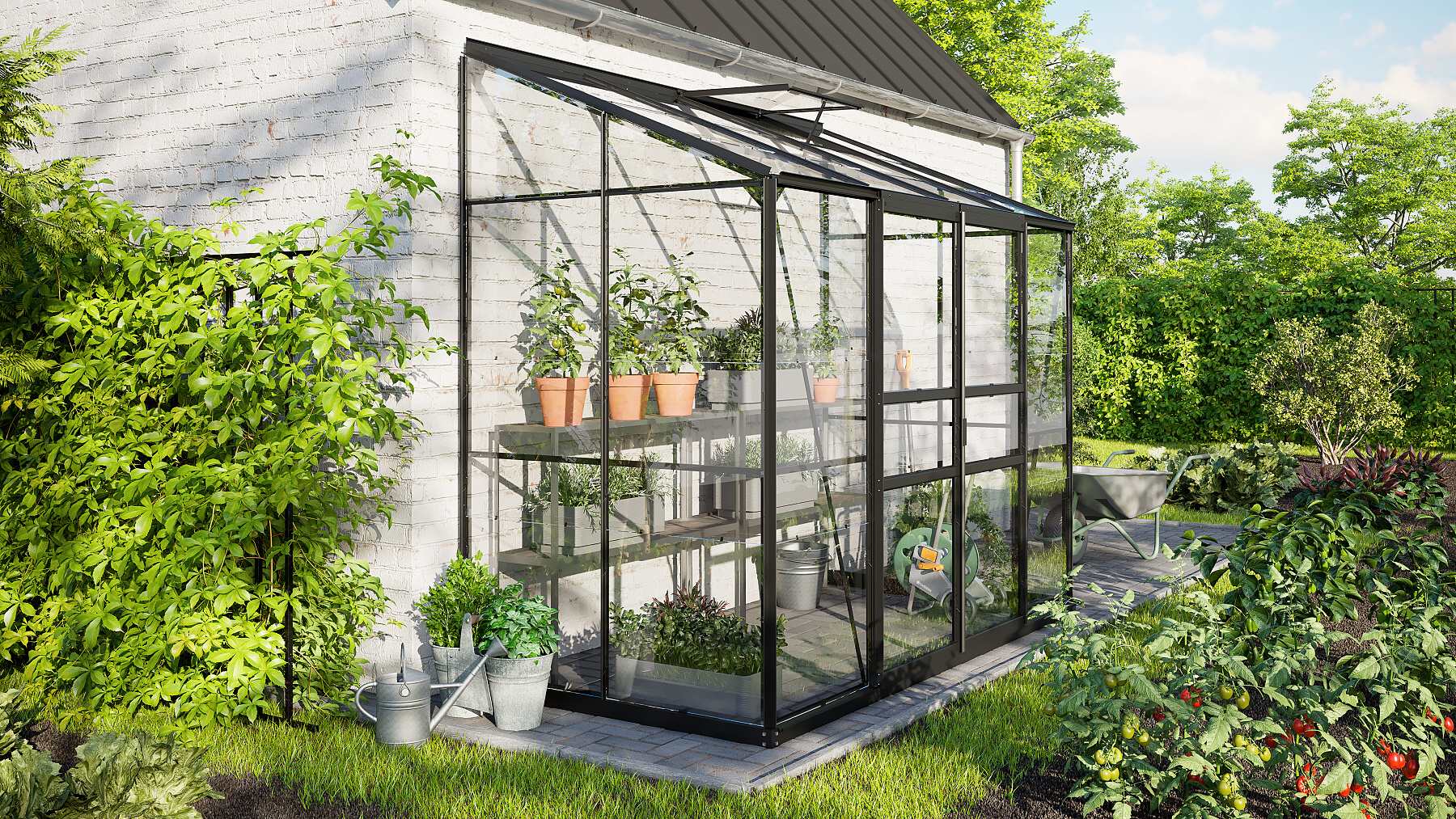 Szklarnia jest przeznaczona do montażu na ścianie – tylna ściana nie jest częścią konstrukcji.