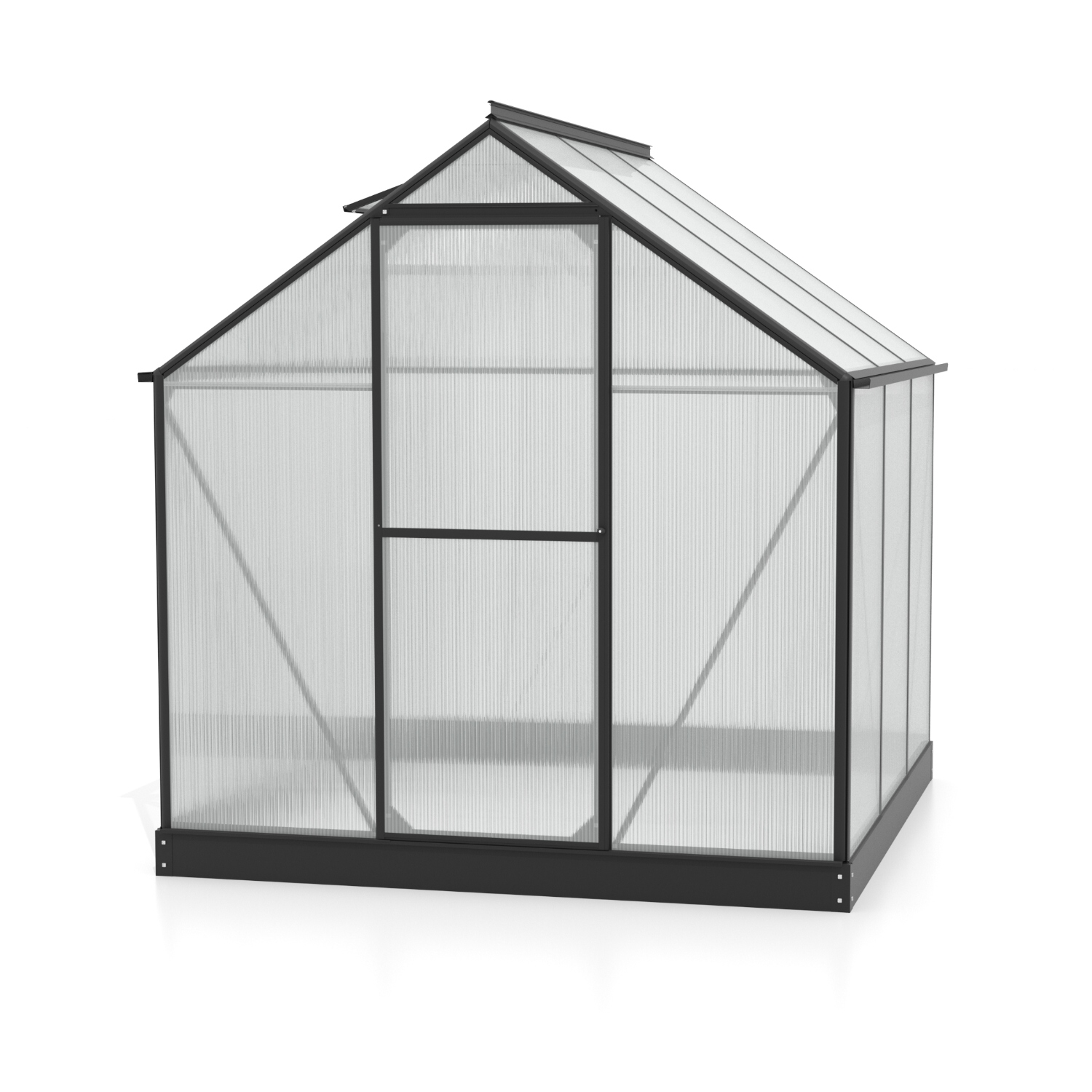 Szklarnia aluminiowa, sz 1,98 x gł 1,93 m, kolor czarny, 1x okno dachowe, poliwęglan o grubości 6 mm z Wielkiej Brytanii, drzwi uchylne, pow 3,82 m2.