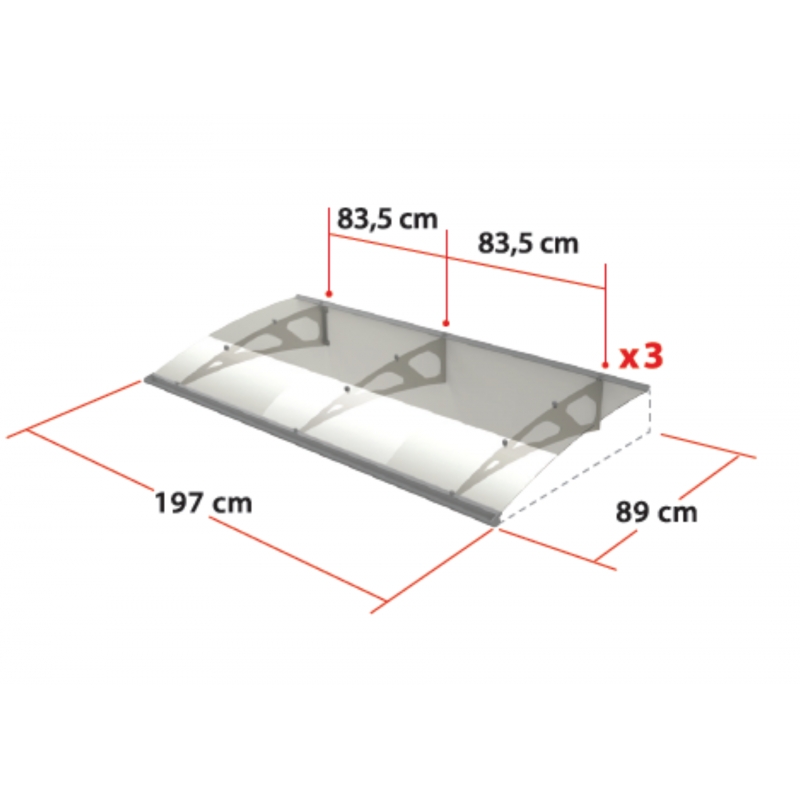 Daszek nad drzwiami wykonany z aluminium anodowanego. W przeciwieństwie do zadaszeń o konstrukcji z tworzywa sztucznego, konstrukcja aluminiowa doskonale opiera się działaniu czynników atmosferycznych, a także jest mocna i stabilna nawet po latach. Nie kruszy się zimą pod wpływem mrozu i nie zmienia koloru nawet pod wpływem silnego letniego słońca. Daszek przeszklony jest całkowicie przezroczystą, przezroczystą plexi o grubości 4 mm.