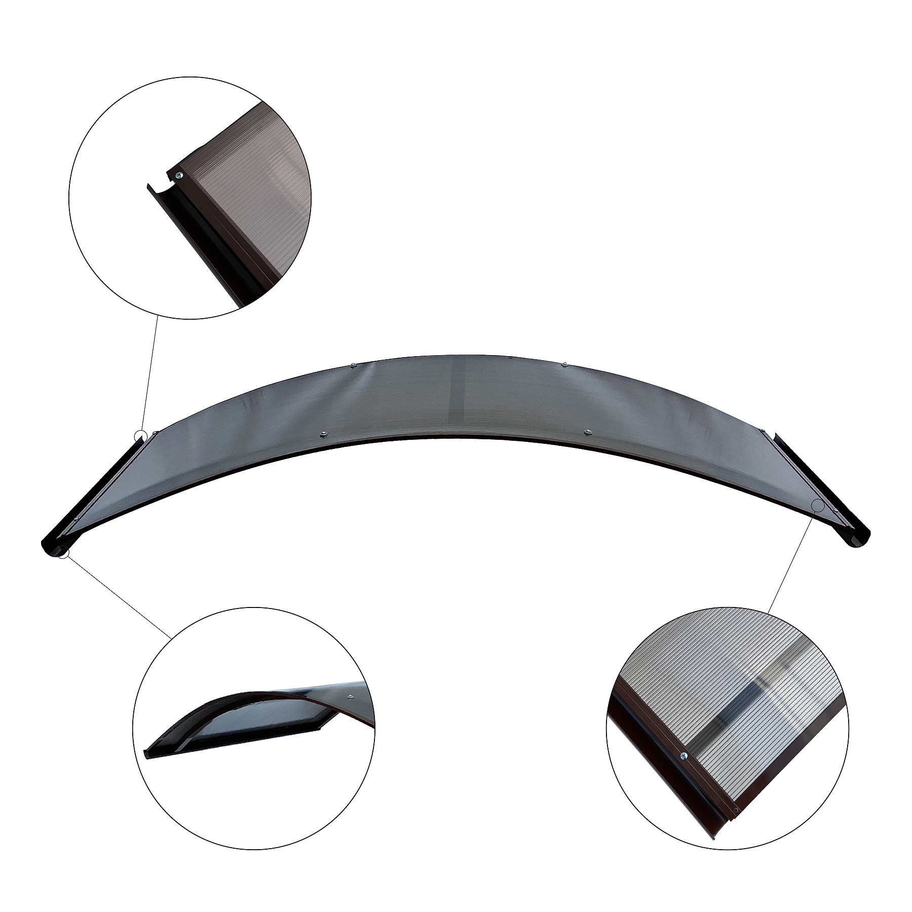 Ścianka boczna aluminiowa uniwersalna w kolorze brązowym do daszka nad drzwiami, 310 x 600 x 1850 mm, poliwęglan komorowy dymiony 4,5 mm.