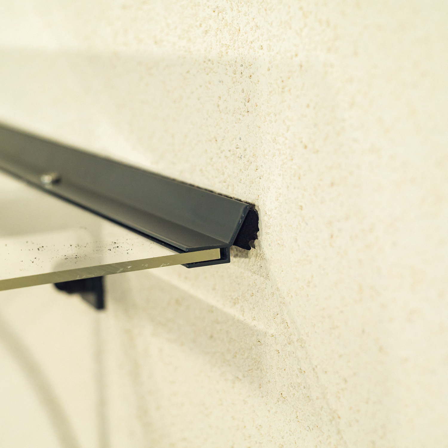 Daszek nad drzwiami wykonany z aluminium malowanego proszkowo. W przeciwieństwie do zadaszeń o konstrukcji z tworzywa sztucznego, konstrukcja aluminiowa doskonale opiera się działaniu czynników atmosferycznych, a także jest mocna i stabilna nawet po latach. Nie kruszy się zimą pod wpływem mrozu i nie zmienia koloru nawet pod wpływem silnego letniego słońca. Daszek przeszklony jest całkowicie przezroczystą, przezroczystą plexi o grubości 4 mm.