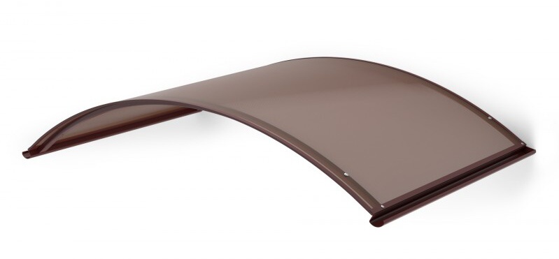 Aluminiowy baldachim wejściowy, brązowy, szer 1300 x gł 700 x wys 250 mm, poliwęglan komorowy dymiony 4,5 mm.