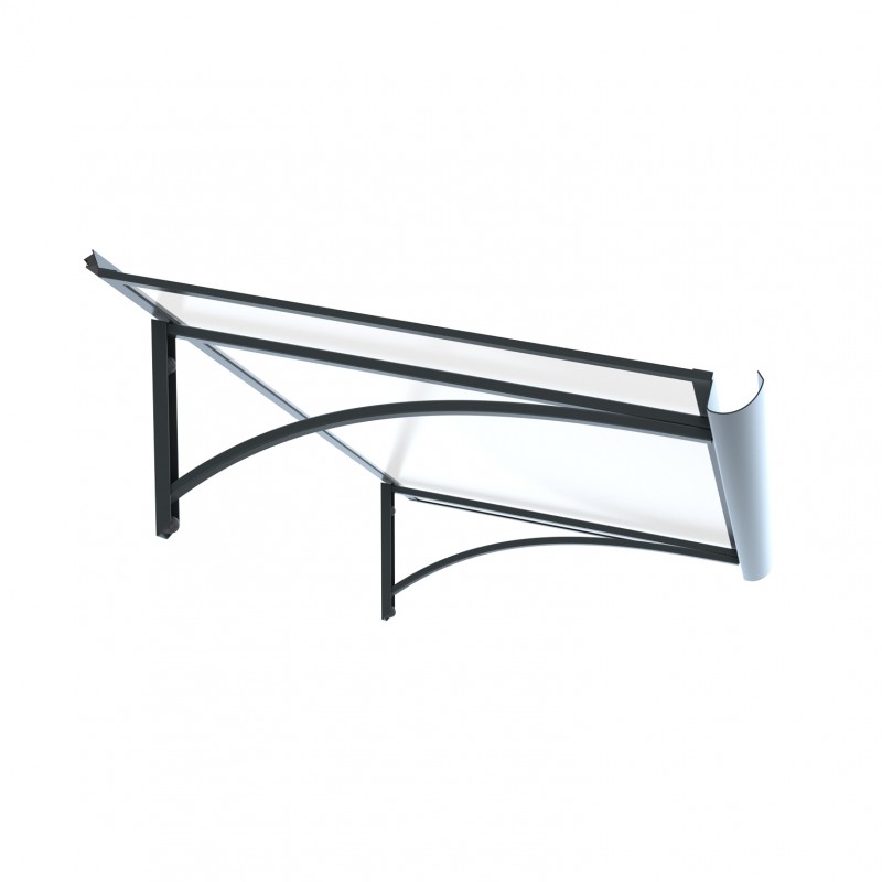 Daszek nad drzwiami wykonany z aluminium malowanego proszkowo. W przeciwieństwie do zadaszeń o konstrukcji z tworzywa sztucznego, konstrukcja aluminiowa doskonale opiera się działaniu czynników atmosferycznych, a także jest mocna i stabilna nawet po latach. Nie kruszy się zimą pod wpływem mrozu i nie zmienia koloru nawet pod wpływem silnego letniego słońca. Daszek przeszklony jest całkowicie przezroczystą, przezroczystą plexi o grubości 4 mm.