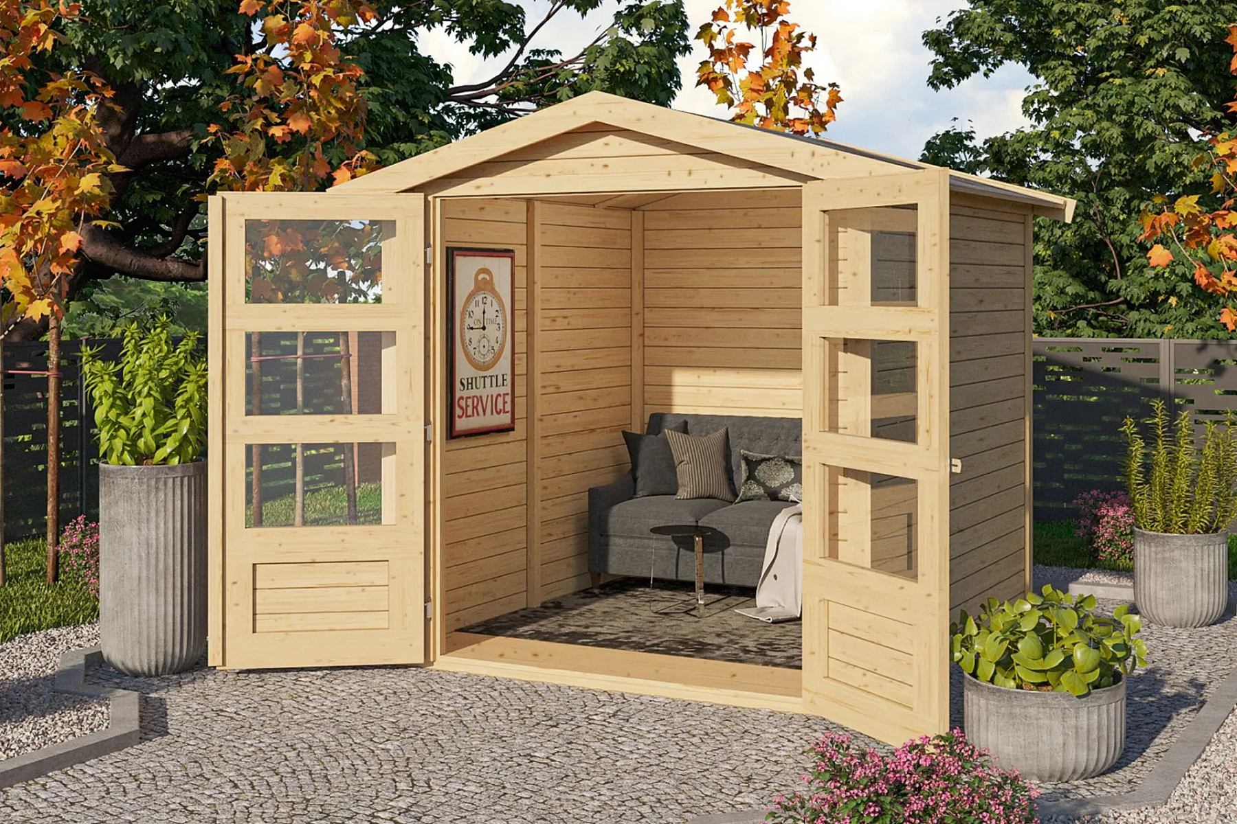Podstawowy model drewnianego domu do Twojego ogrodu. Model ten posiada dwuspadowy dach oraz dwuskrzydłowe drzwi uchylne z oknem w każdym skrzydle. Materiałem konstrukcyjnym domu są profile drewniane o grubości 19 mm, doskonale wyfrezowane ze świerku nordyckiego. Dostarczamy go w zestawie w stanie rozłożonym, gdzie ściany składają się z pojedynczych profili drewnianych, które wystarczy złożyć i skręcić. Gwarantuje to niezwykle prosty montaż, który może wykonać każdy domowy majsterkowicz.