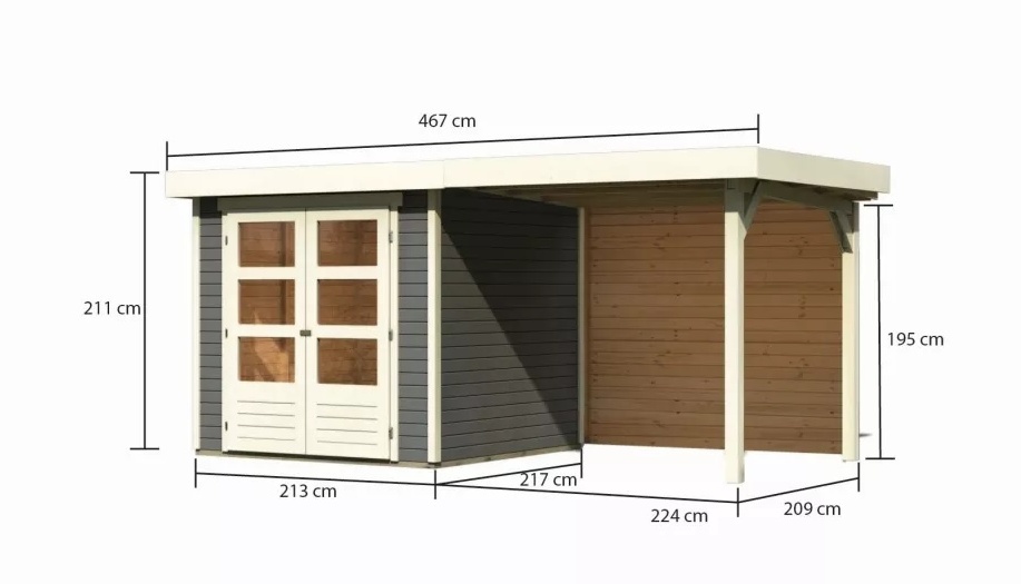 dom drewniany KARIBU ASKOLA 2 + nadstawka 240 cm łącznie ze ścianą tylną (9165) terragrau