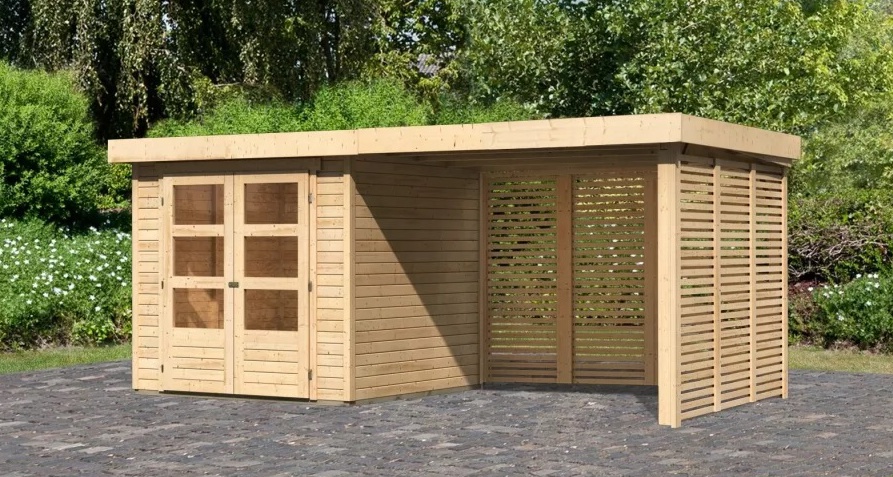dom drewniany KARIBU ASKOLA 2 + nadstawka 280 cm łącznie ze ścianami tylnymi i bocznymi (9169) natur