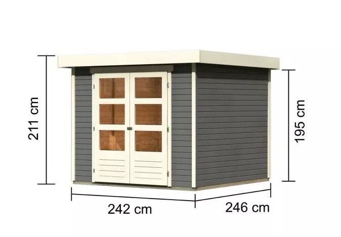 Podstawowy model drewnianego domu do Twojego ogrodu. Model ten posiada płaski dach oraz podwójne drzwi uchylne z oknem w każdym skrzydle. Materiałem konstrukcyjnym domu są profile drewniane o grubości 19 mm, doskonale wyfrezowane ze świerku nordyckiego. Dostarczamy go w zestawie w stanie rozłożonym, gdzie ściany składają się z pojedynczych profili drewnianych, które wystarczy złożyć i skręcić. Gwarantuje to wyjątkowo prosty montaż, z którym poradzi sobie każdy majsterkowicz.