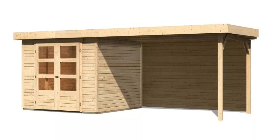 dom drewniany KARIBU ASKOLA 3,5 + nadstawka 280 cm łącznie ze ścianą tylną (9149) natur